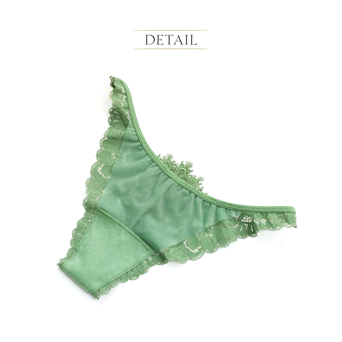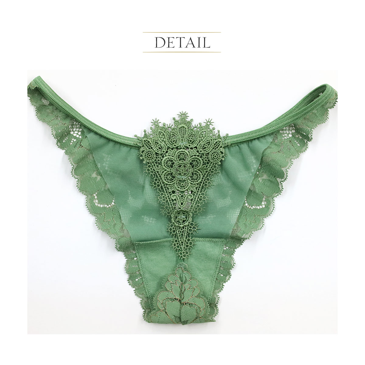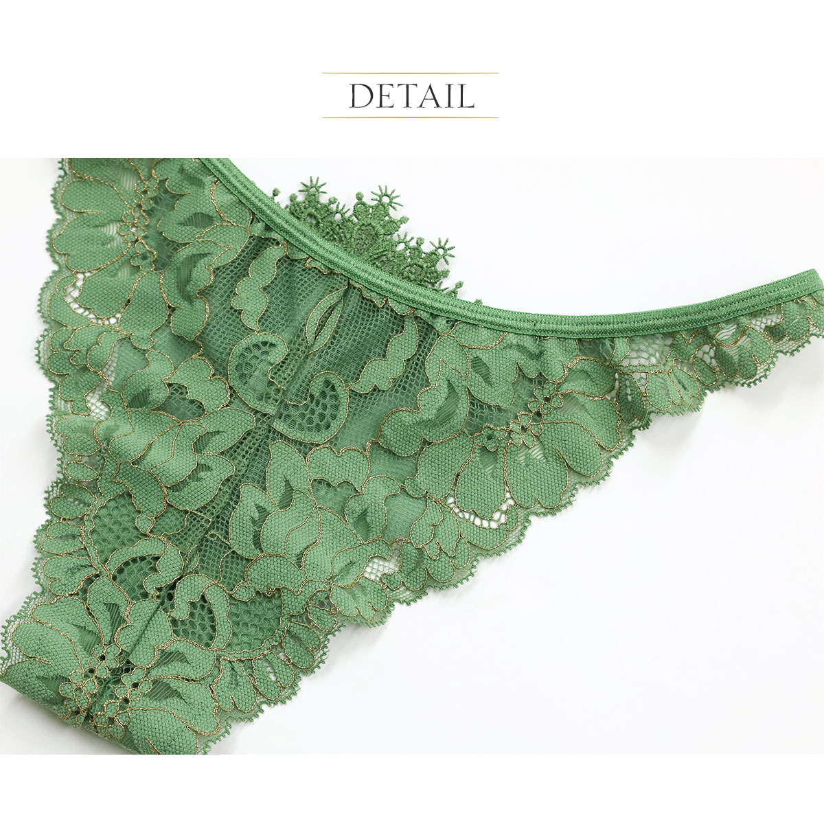孔雀の羽のようなモチーフレースが各所に施された華やかで遊び心たっぷりの正にPlayfulなコレクション。ポジティブな気分になれるGreenと柔らかなBeigeの2色展開。