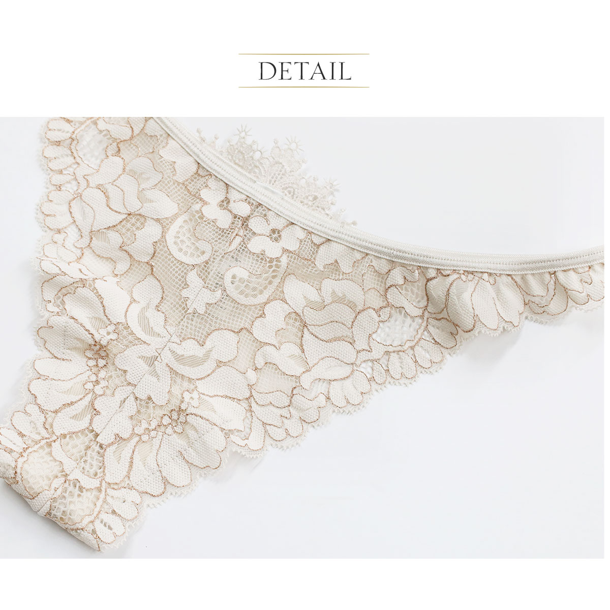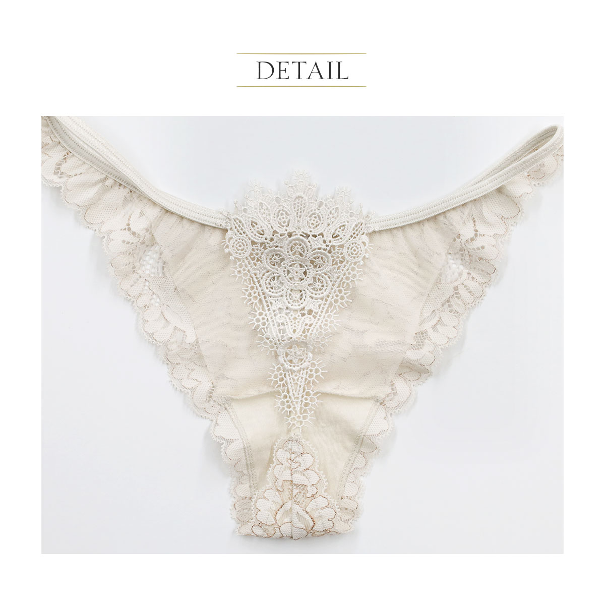 インポートならではの、大胆でセンシュアルなデザイン。デコラティブなバックスタイルに対して、フロントはフローラルレースで上品に。洗練されたデザインが、大人の女性の凛とした色香を引き立てます。フロントにはレースと同色の肌触り柔らかなチュール生地を裏打ち。