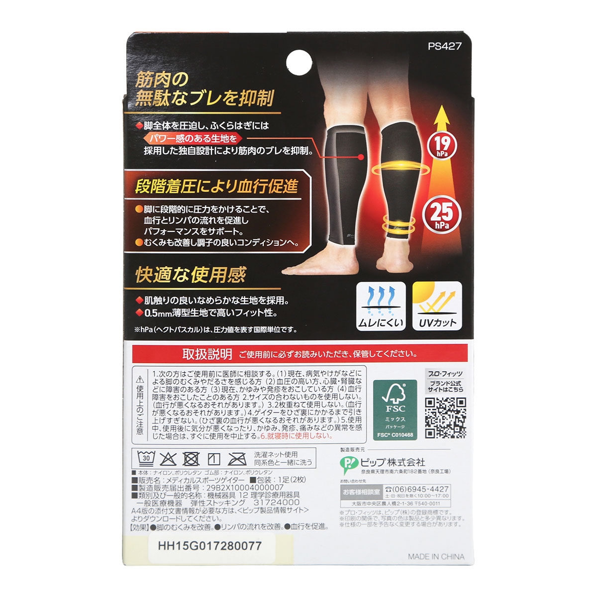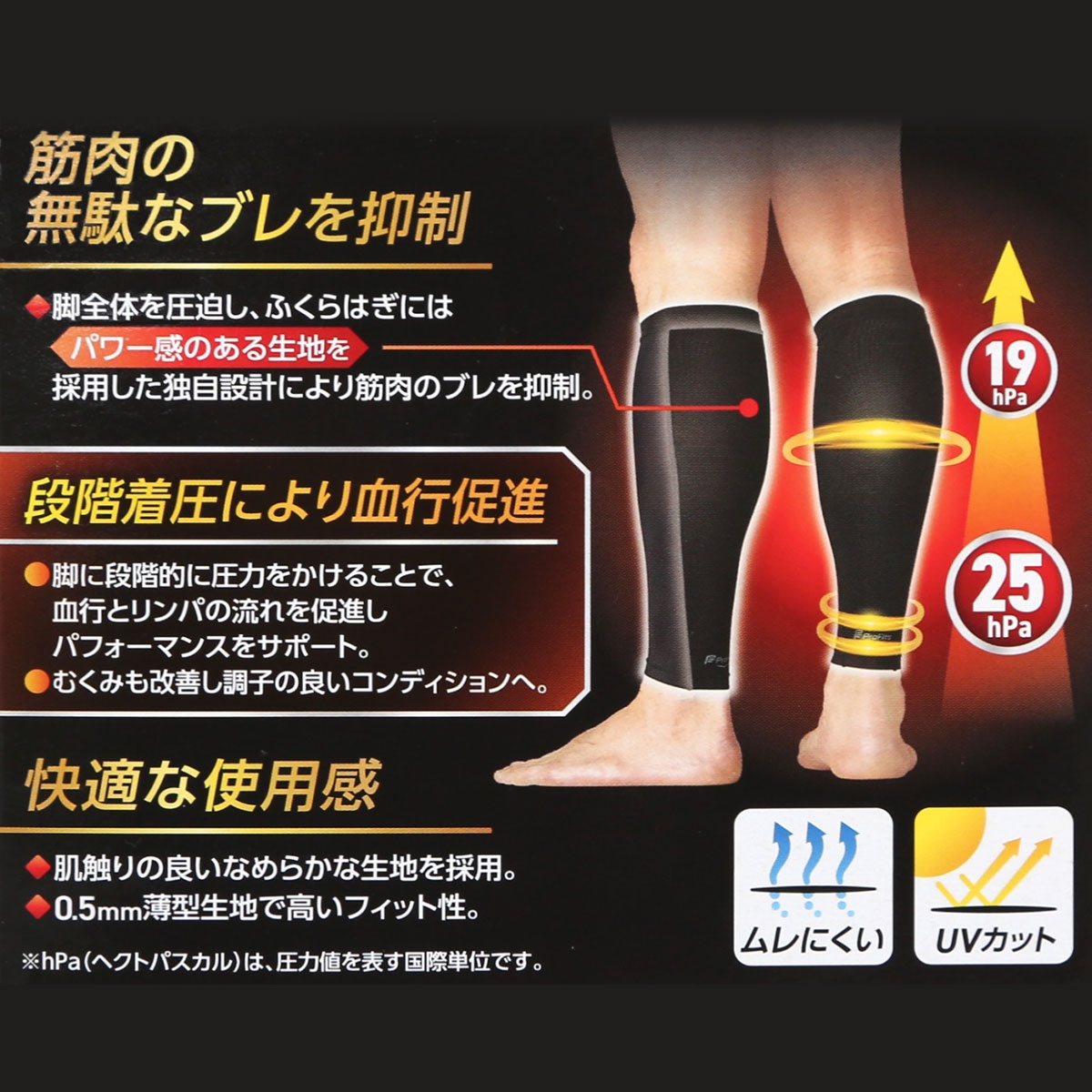 仕 様・日本製・段階着圧:足首25hPa ふくらはぎ19hPa