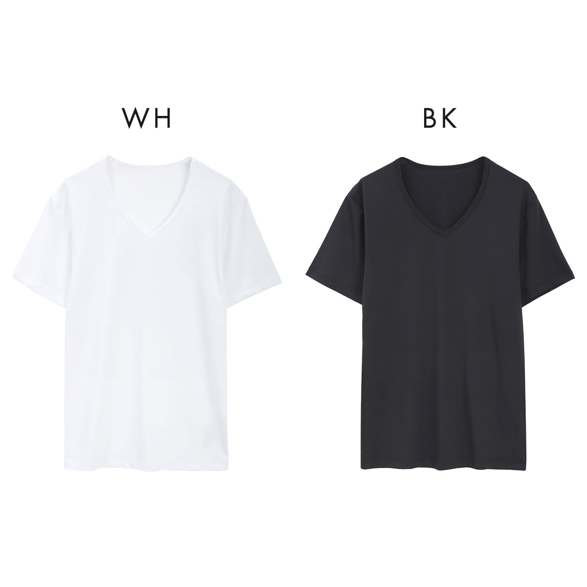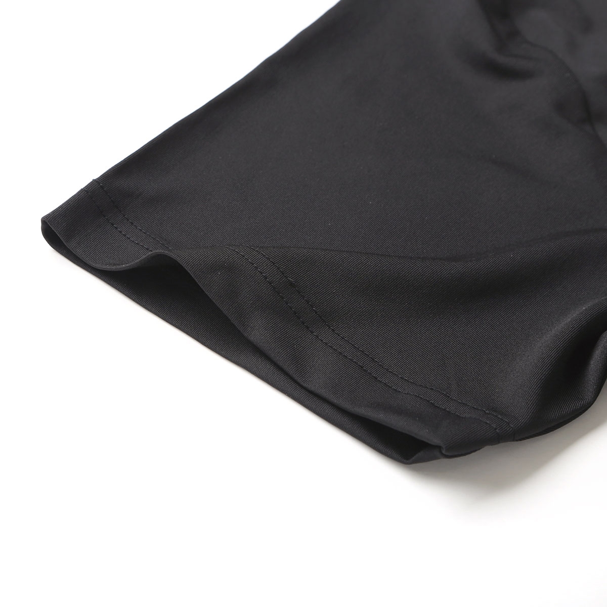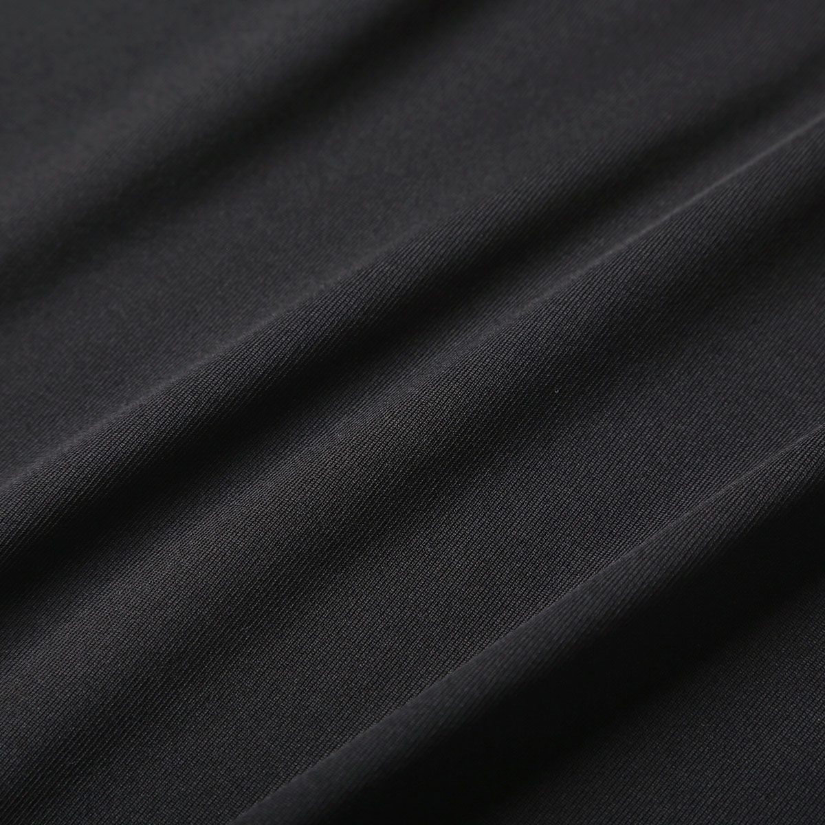 前身頃(胸部分)2重構造にすることで、突起が出にくくする構造に。透け対策にも効果的です。身生地は吸水速乾性があり、汗ばむ時期に心強いポリエステルベア天竺素材を使用。ストレッチ性に富み、快適な着用感です。