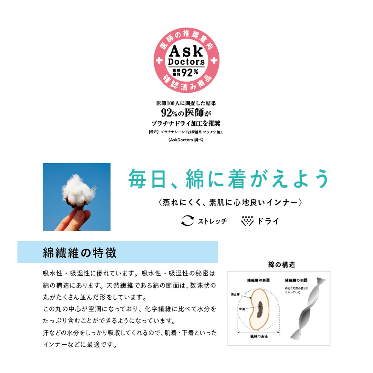 100名中92%の医師が推奨するプラチナ加工を施したアンダーウェア