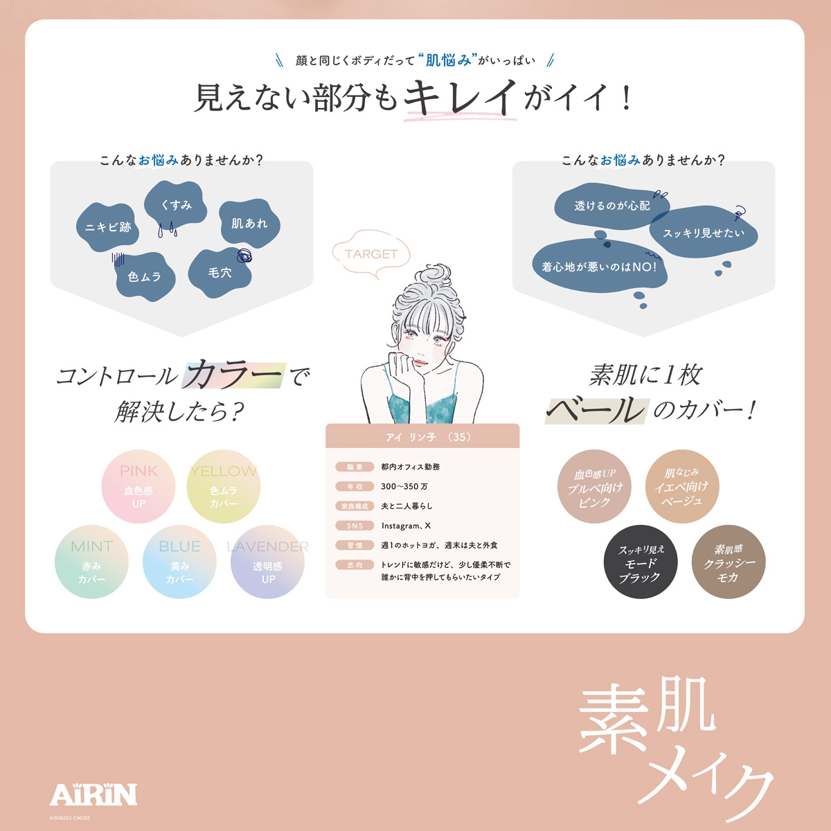 透けるのが心配、スッキリ見せたい、着心地が悪いのはイヤだ・・・など、こんな悩みありませんか?そんな悩みにベールの力でカバー!血色感アップのブルベ向けピンク、肌なじみの良いイエベ向けベージュ、スッキリ見えモードブラック、素肌感クラッシーモカの4色展開でお悩みに対応。