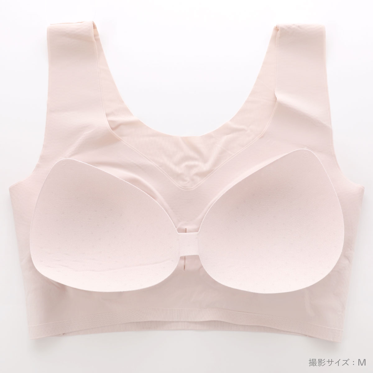 身生地はサラッとした接触冷感素材で夏でも心地よい着心地に。カップはメッシュカップを使用し、ムレにくい仕様になっています。ネームタグレスで不快感もなく快適にご着用いただけます。