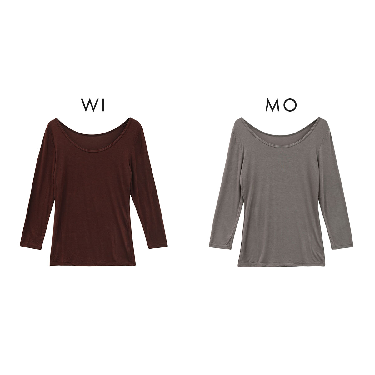 コントランテ ContRante バックオープン ブラトップ長袖 背中見せ インナー カップ付き XS S M L LL あったかインナー 7分袖