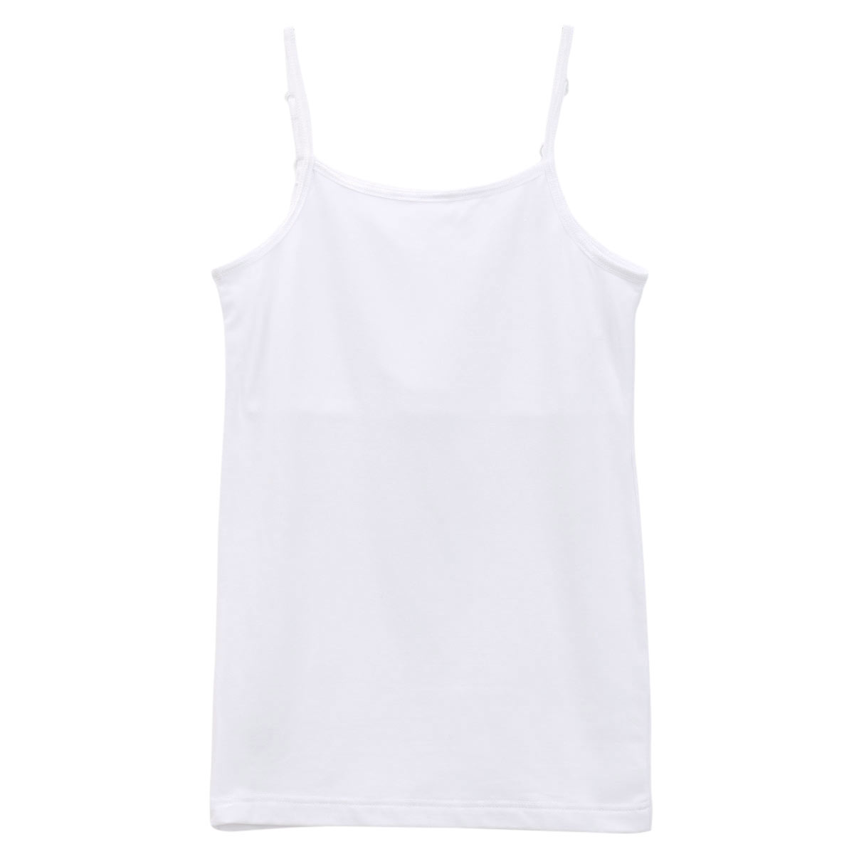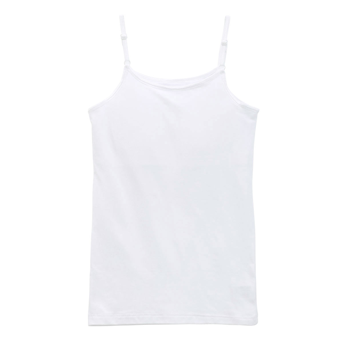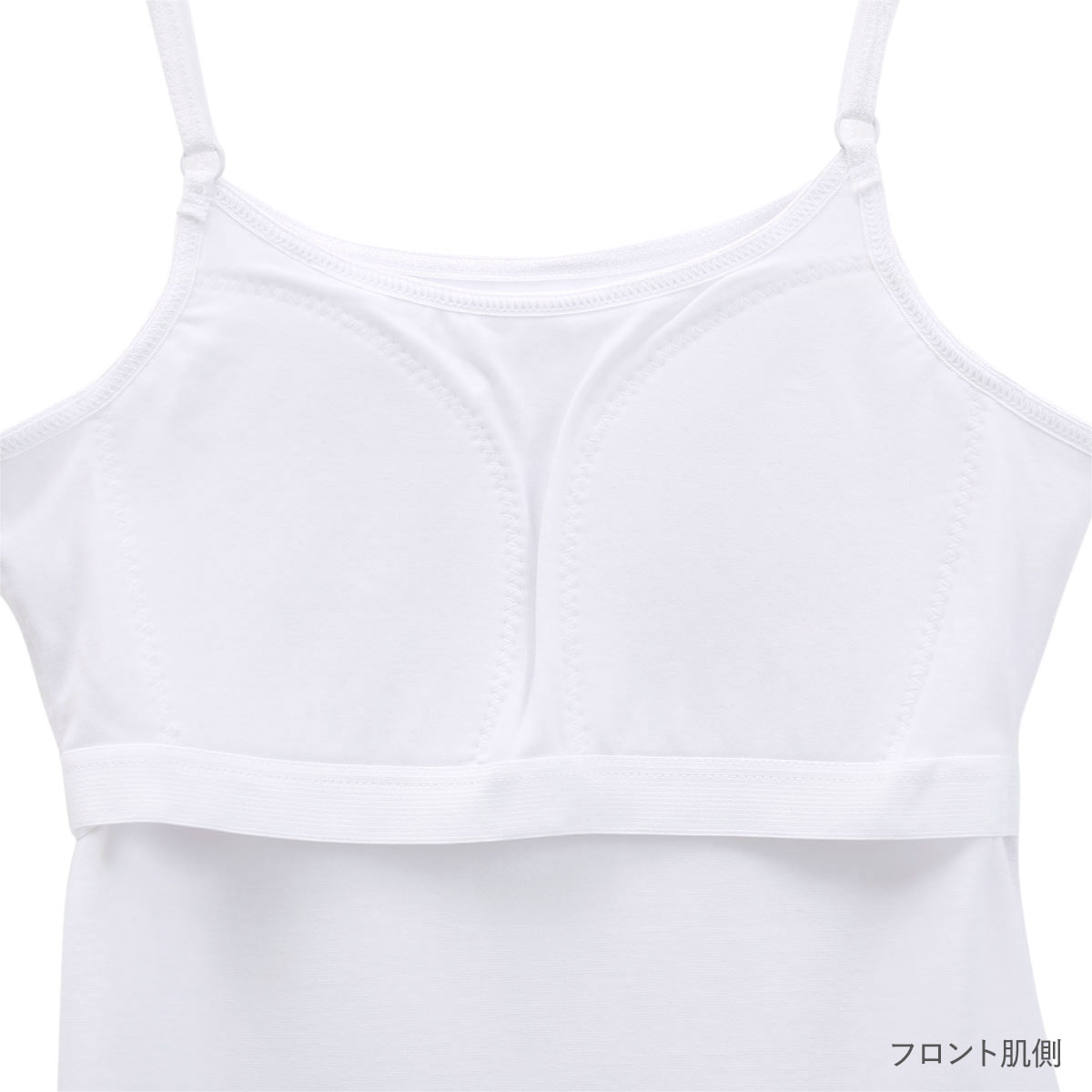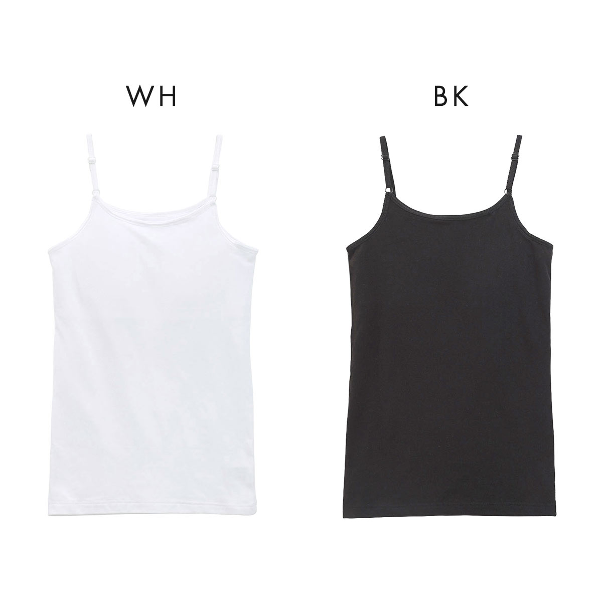 綿混素材で肌触りよく伸縮性のある素材を使用したキャミソール。身体にしっかりフィットしムレにくく肌にもやさしく、体育などの運動にも適しています。ストラップはアジャスター付きで長さ調節が可能です。アジャスターが前についているので、着用後にも長さの調節がしやすいのが嬉しいポイント。