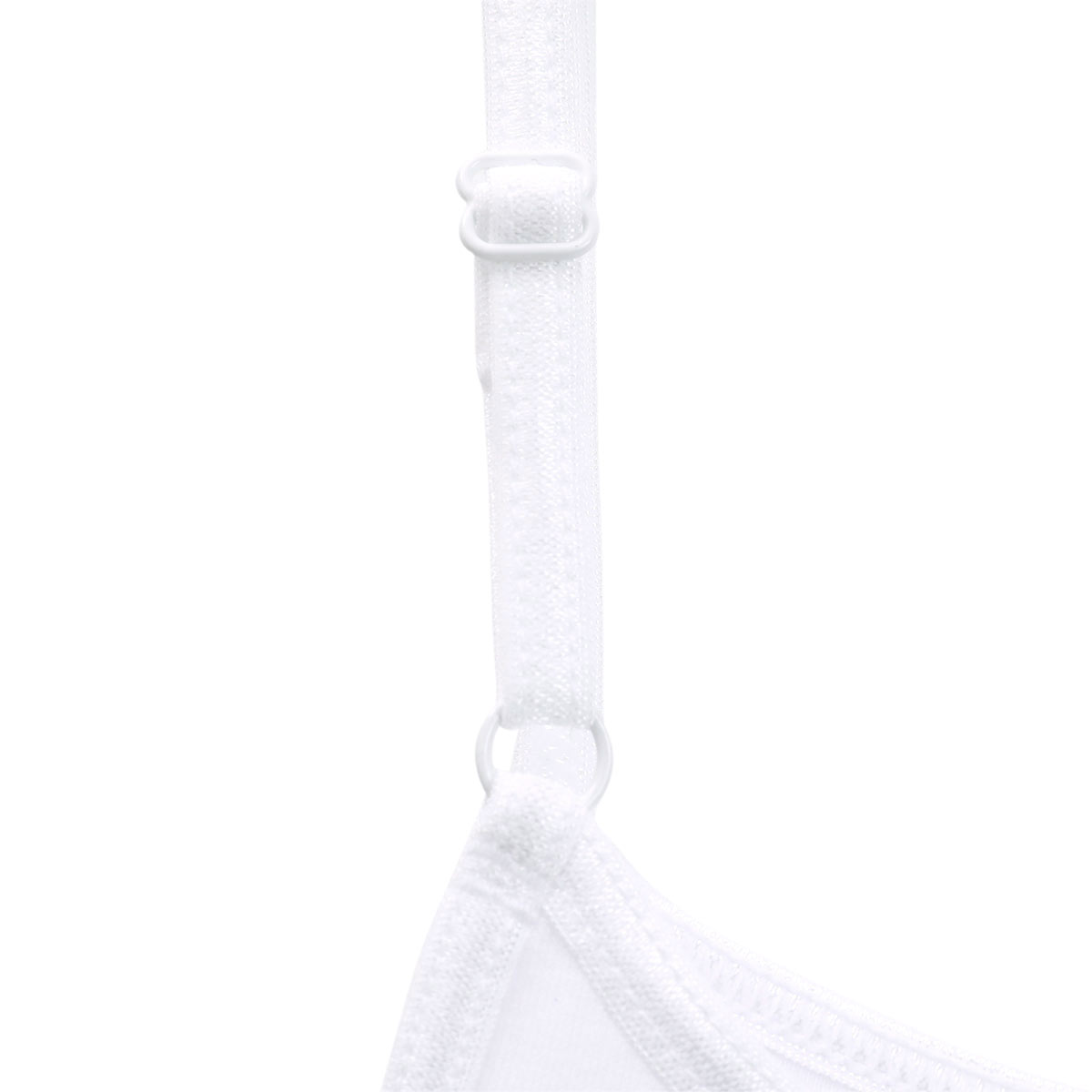 成長中の胸をやさしくガードする、やわらかソフトパッドつき。カップインタイプ(一体型)でズレにくいため、動いても安心です。肌側バストアンダー部分は背中までゴムをぐるりとほどこし、よりフィット感を高めています。