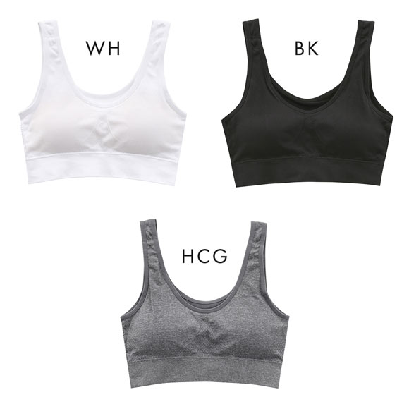 | 仕 様 | ・ホックなし、かぶりタイプ ・モールドカップ付き ・パッド取外し:可能 ・ノンワイヤー ・サイドボーン:なし ・全方向に伸縮性あり ・吸汗速乾 ・UVカット |