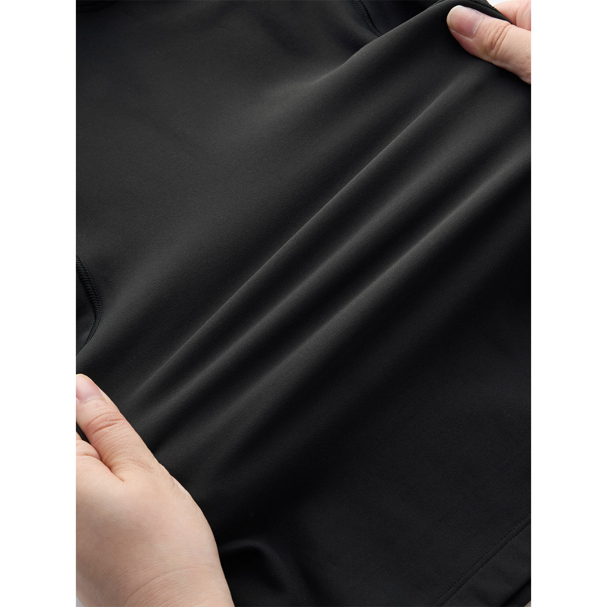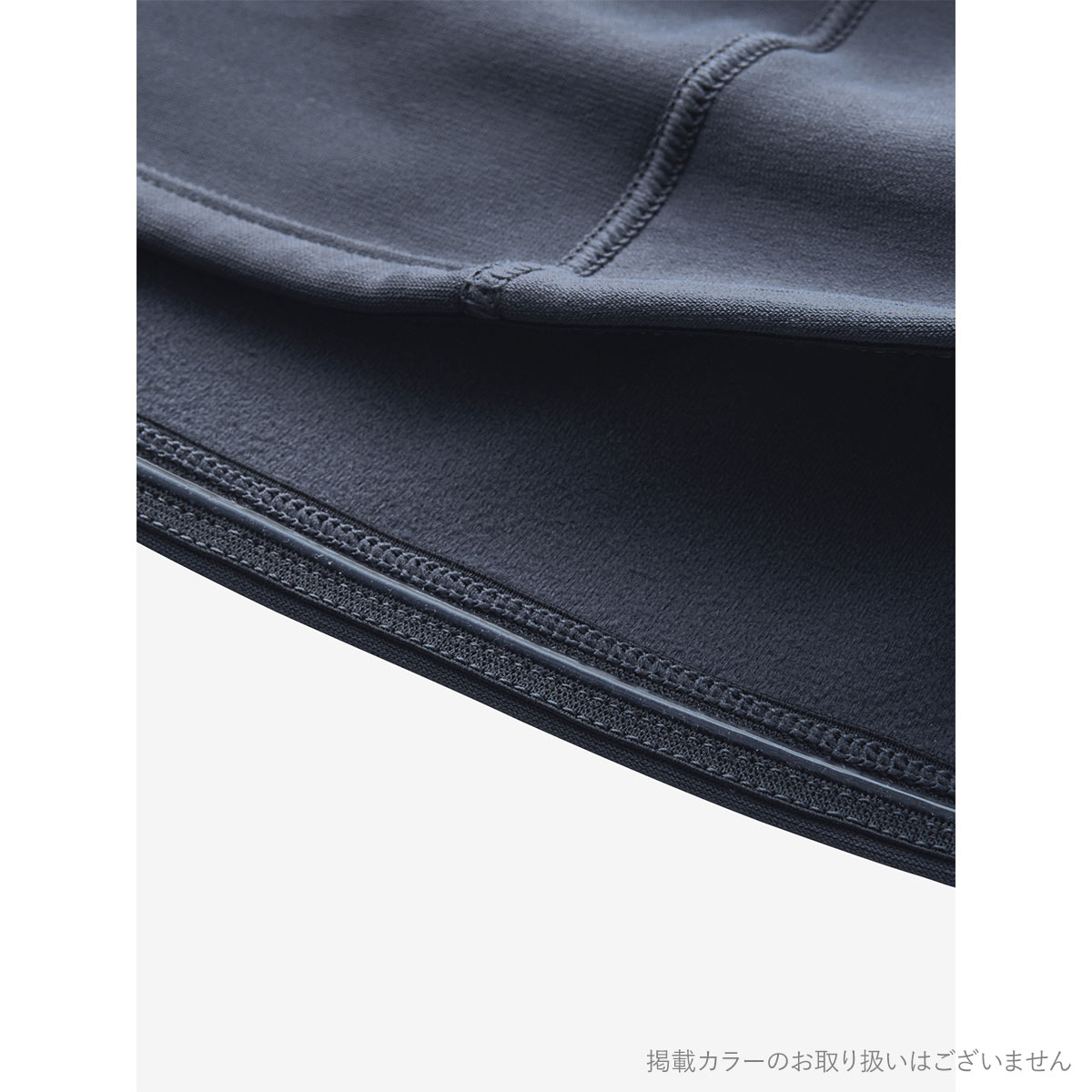 シルエットは、日本人の平均的な体型をもとにフィット感を追求。着用によるストレスが少なく、長時間の使用でも快適な着心地で、首まわりも暖かなハイネックタイプです。着用時のずり上がりを軽減するため、裾裏にシリコンの滑り止めを配しています。UVガード(UPF30-50+、紫外線カット率90%以上※30%伸長時のデータ)機能付き。