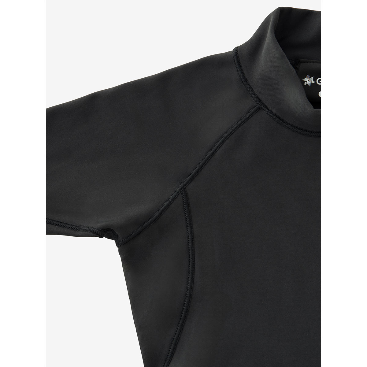 シルエットは、日本人の平均的な体型をもとにフィット感を追求。着用によるストレスが少なく、長時間の使用でも快適な着心地で、首まわりも暖かなハイネックタイプです。着用時のずり上がりを軽減するため、裾裏にシリコンの滑り止めを配しています。UVガード(UPF30-50+、紫外線カット率90%以上※30%伸長時のデータ)機能付き。