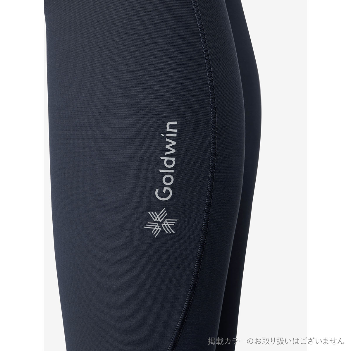 左脚にさりげなくGoldwinロゴをあしらった、シンプルなデザイン。ウエスト部分には、ずり落ちを軽減するためのドローコードを配置しています。UVガード(UPF30-50+、紫外線カット率90%以上※30%伸長時のデータ)機能付き。