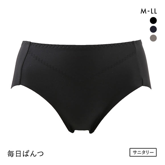 | 仕 様 | ・サニタリー(ふつうの日用) ・羽つきナプキン対応 ・足口ヘム仕様 ・お腹おさえ ・2WAYに伸縮性あり ・クロッチ:付き(防水シート) ・透感:なし ・はき込み丈:ふつう |