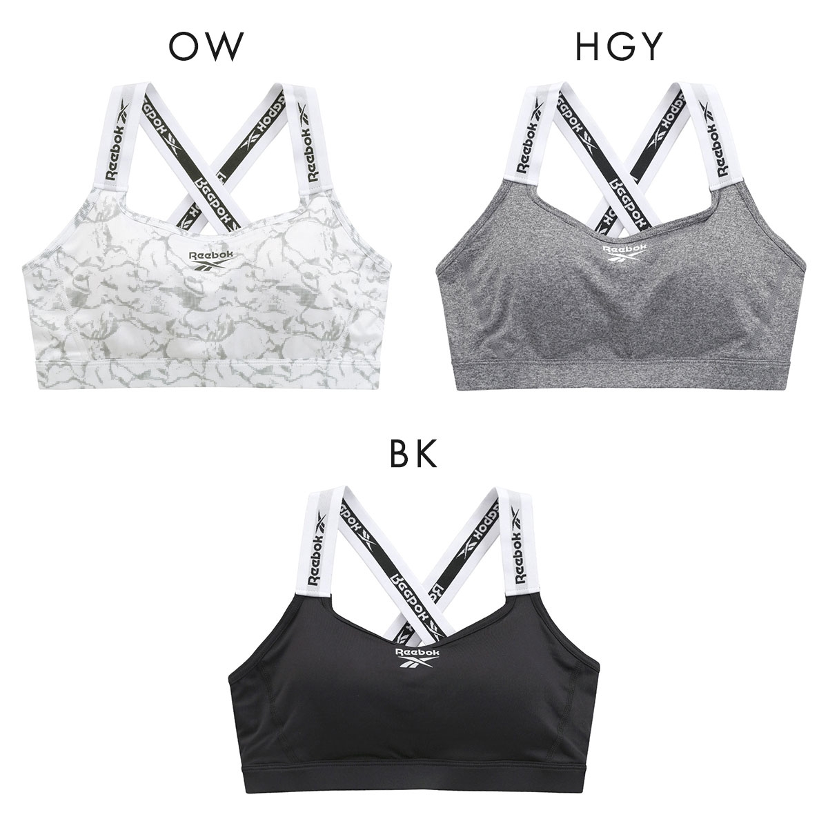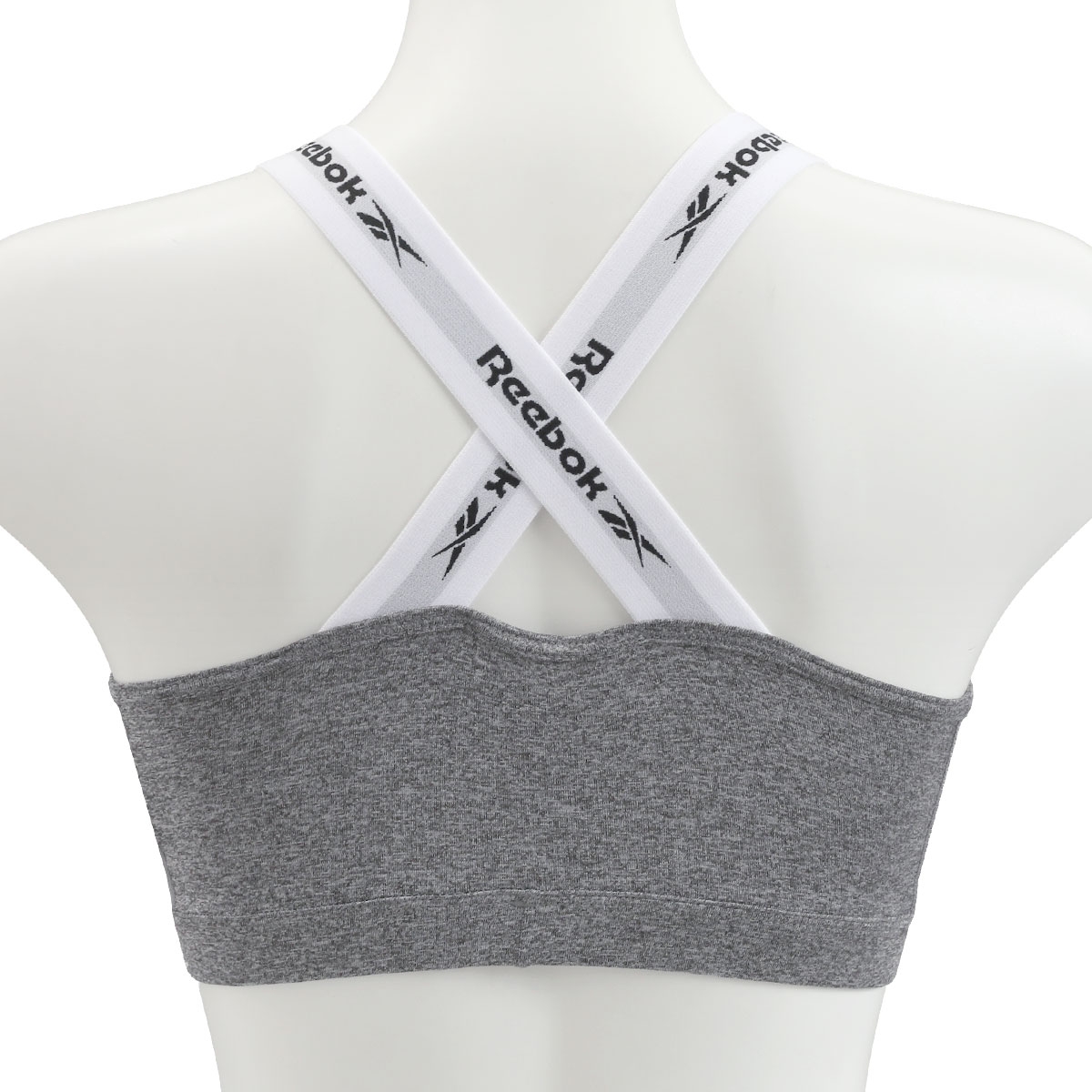リーボック レディース 肩ゴム ロゴゴム ハーフトップ ノンワイヤー スポーツブラ レディース DRY UPF50+ バッククロス ML Reebok LADYS(HGY-杢グレー-M)