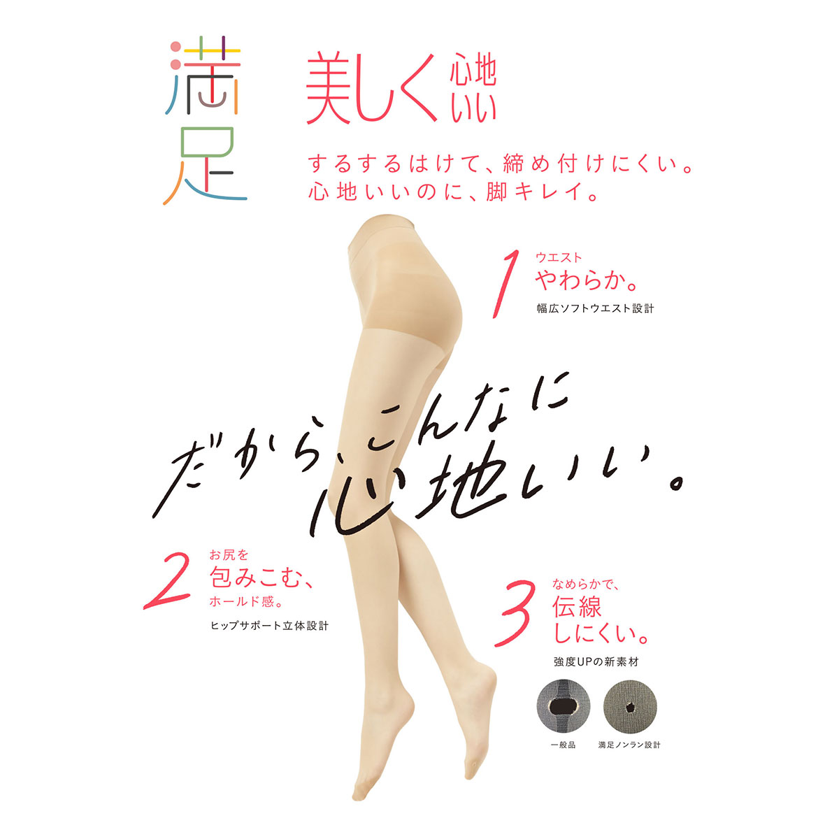 福助 Fukuske 満足 ストッキング パンスト ノンランストッキング 3足組 日本製