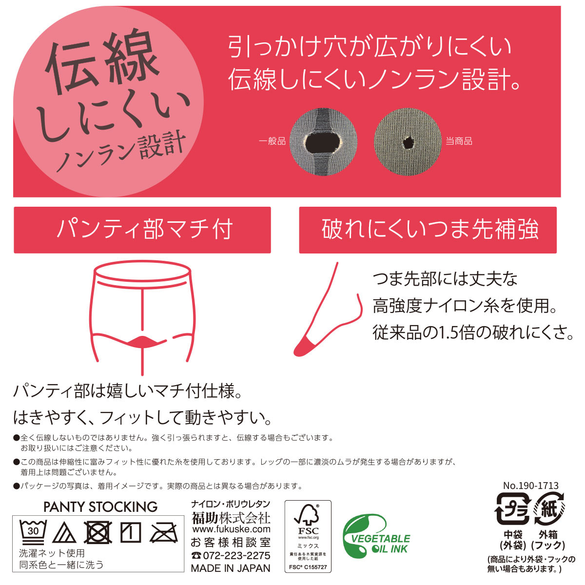 引っかけ穴が伝線しにくいノンラン加工商品
