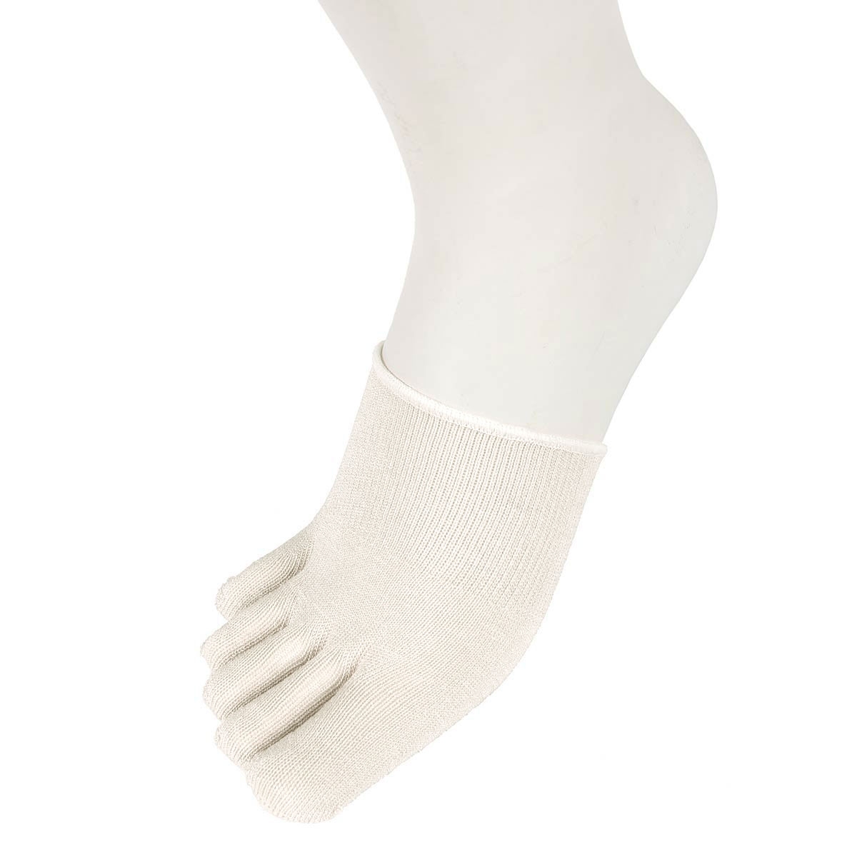 人の肌に近い成分を持ち、肌に優しい天然素材であるシルクを使用しました。幅広い使い方ができるのが、この5本指つま先ソックス。夏はサボサンダルやバブーシュに合わせて、冬はタイツの中に履くことで気になる足指のムレ感を軽減します◎寒さ対策として普通の靴下の中に履いて、重ね履きするのもオススメです。実はとても使いやすい、優秀な一足です。