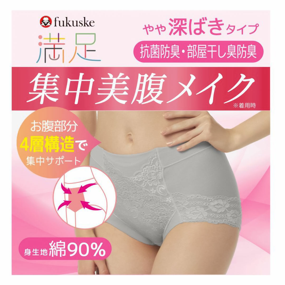 福助 Fukuske 集中美腹メイク 1分丈ショーツ やや深ばき フロントレース ボーイレングス レディース 単品