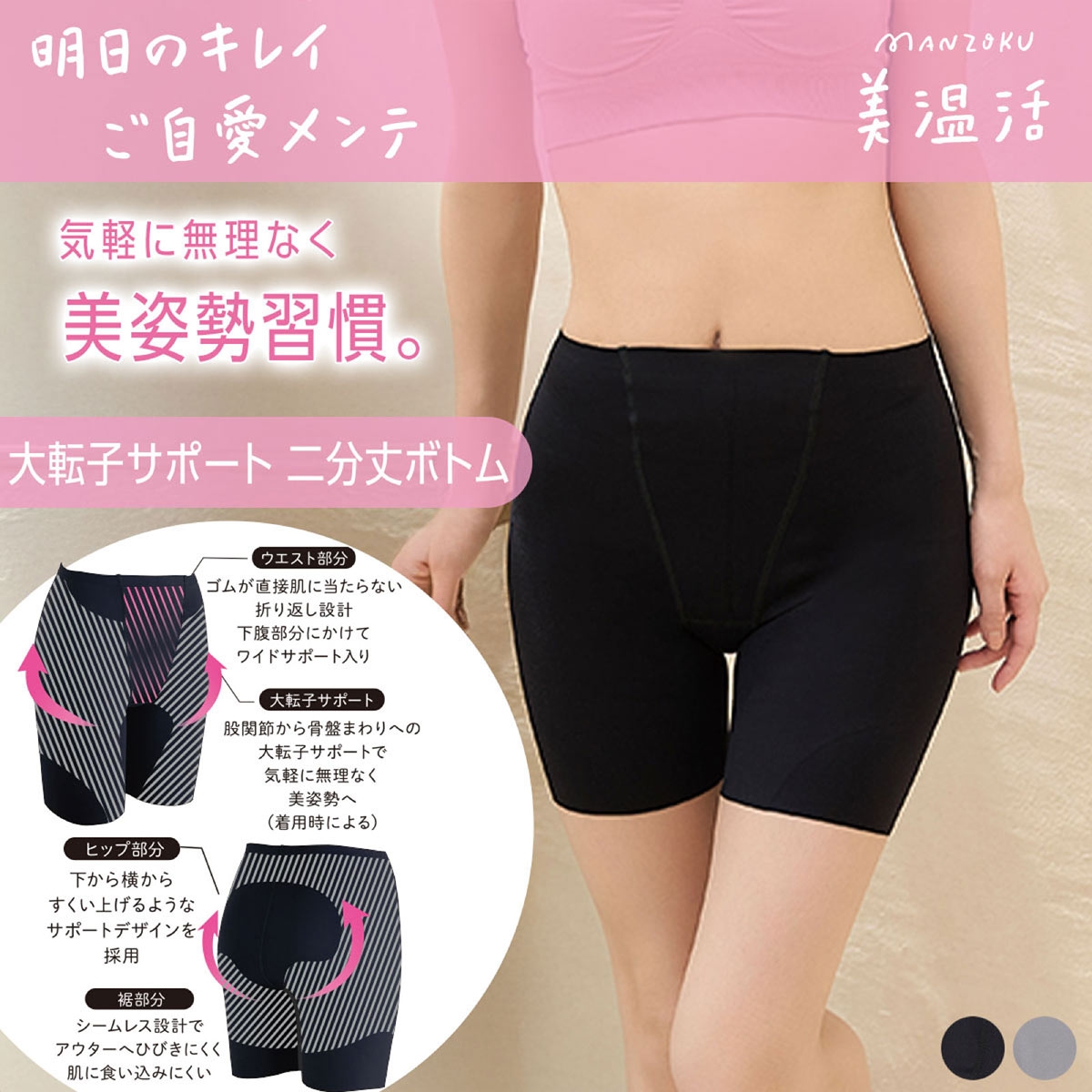 「美整活」インナーは、毎日 はきやすいがつまっているオリジナル設計で、日常生活の中で自然と美姿勢をサポートする新感覚のボトムです。最大の特長は、独自の大転子サポート構造にあります。骨盤や股関節周りの筋肉と密接に関係している「大転子」をポイントにサポートできる新感覚インナーとして開発されました。はき心地にも徹底的にこだわり、1日中はいていても苦しくなりにくいなめらかなフリーカット素材を使用しています。さらに、サポートが必要な部分は接着タイプを採用することで、縫い目がなくゴロつき感を軽減し、肌へのストレスを最小限に抑えています。裾部分も切りっぱなし仕様になっているため、アウターに響きにくく、締め付け感が気になりにくい快適なはき心地です。股の内側部分(内マチ)は綿混素材を使用しており、肌触りが良く安心です。ヒップ部分は下からすくい上げるようなサポートデザインを採用。ウエストゴムが直接肌にあたらない折り返し設計。気になる下腹部分にかけてワイドサポート入り。直ばき、重ねばきどちらもOKな2WAY仕様なので、その日の気分や服装に合わせて自由にご着用いただけます。