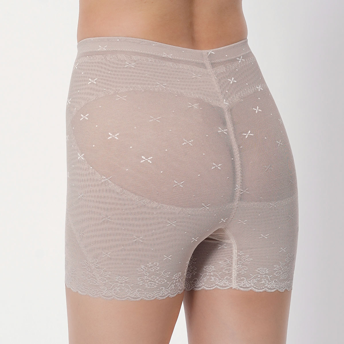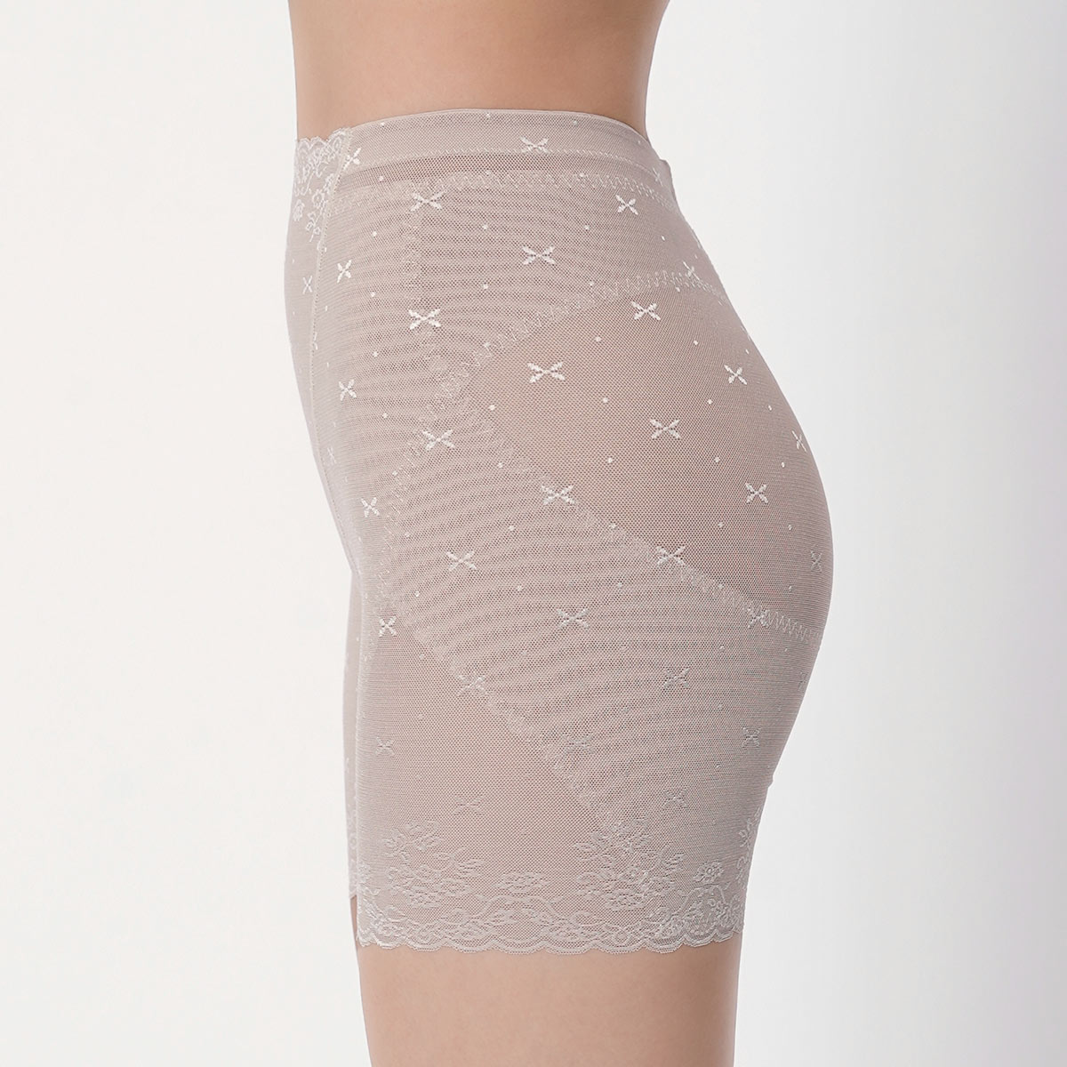 お腹や太もも周りをキュッと引き締める一分丈ボトムインナーで、マチ部分は優しい綿混素材となっています。アウターに響きづらいので、洋服をスマートに着こなせます。