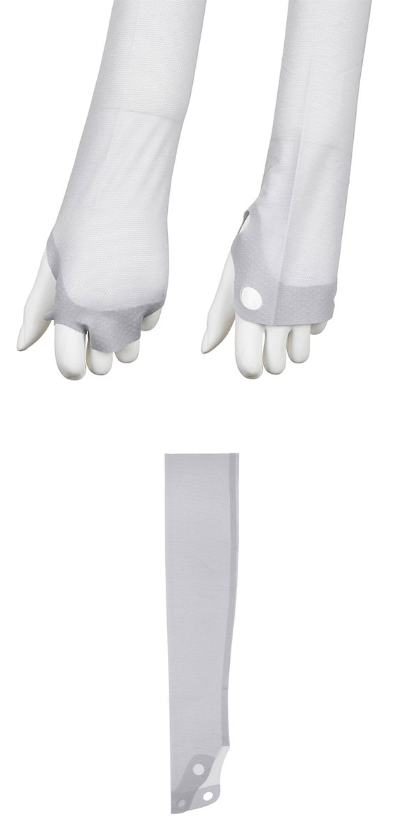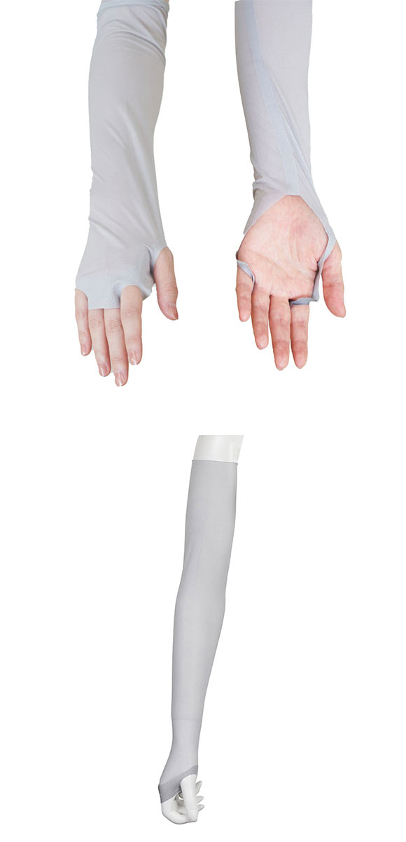 夏の暑さ対策におすすめの『美涼活シリーズ』の接触冷感、吸水速乾機能付きのロングアームカバーの登場です。三本の指が通せるようになっていて甲まで覆える形になっています。UV加工がされていて肌触りがよく、ひんやりする夏にぴったりのアイテムです。