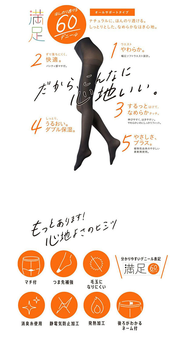 福助 Fukuske 満足 タイツ 60デニール 日本製 しっとりダブル保湿