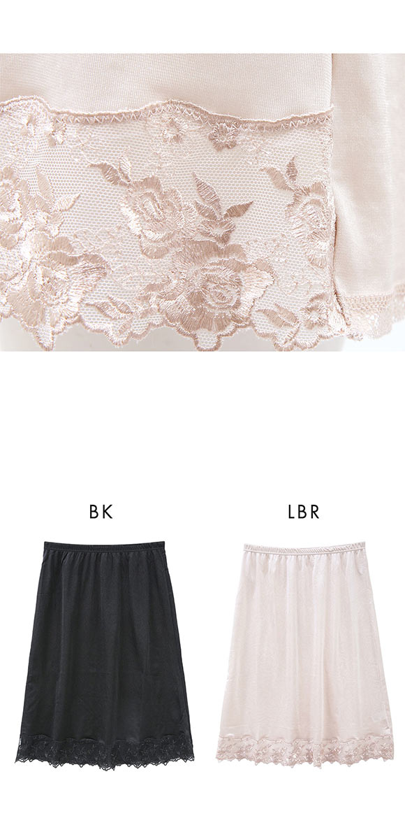 スカートのインナーに使える、上品なランジェリー。1枚中に着るだけで、アウターのすべりがよく、着心地さらりと心地いい。