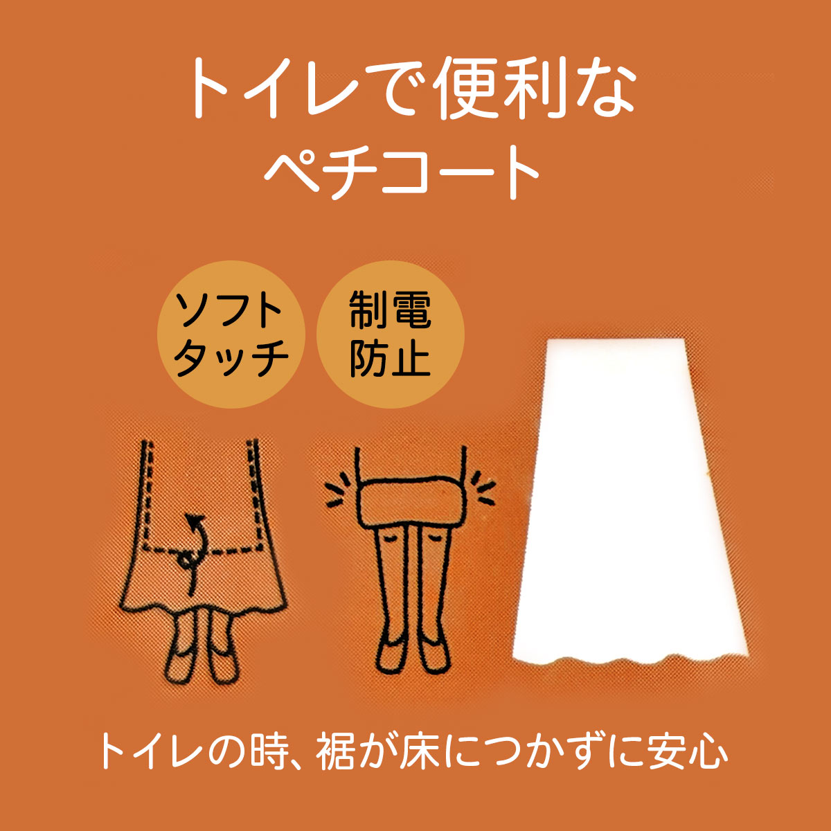 スカートのインナーに使える、上品なペチコート。1枚中に着るだけで、アウターのすべりがよく、着心地さらりと心地いい。