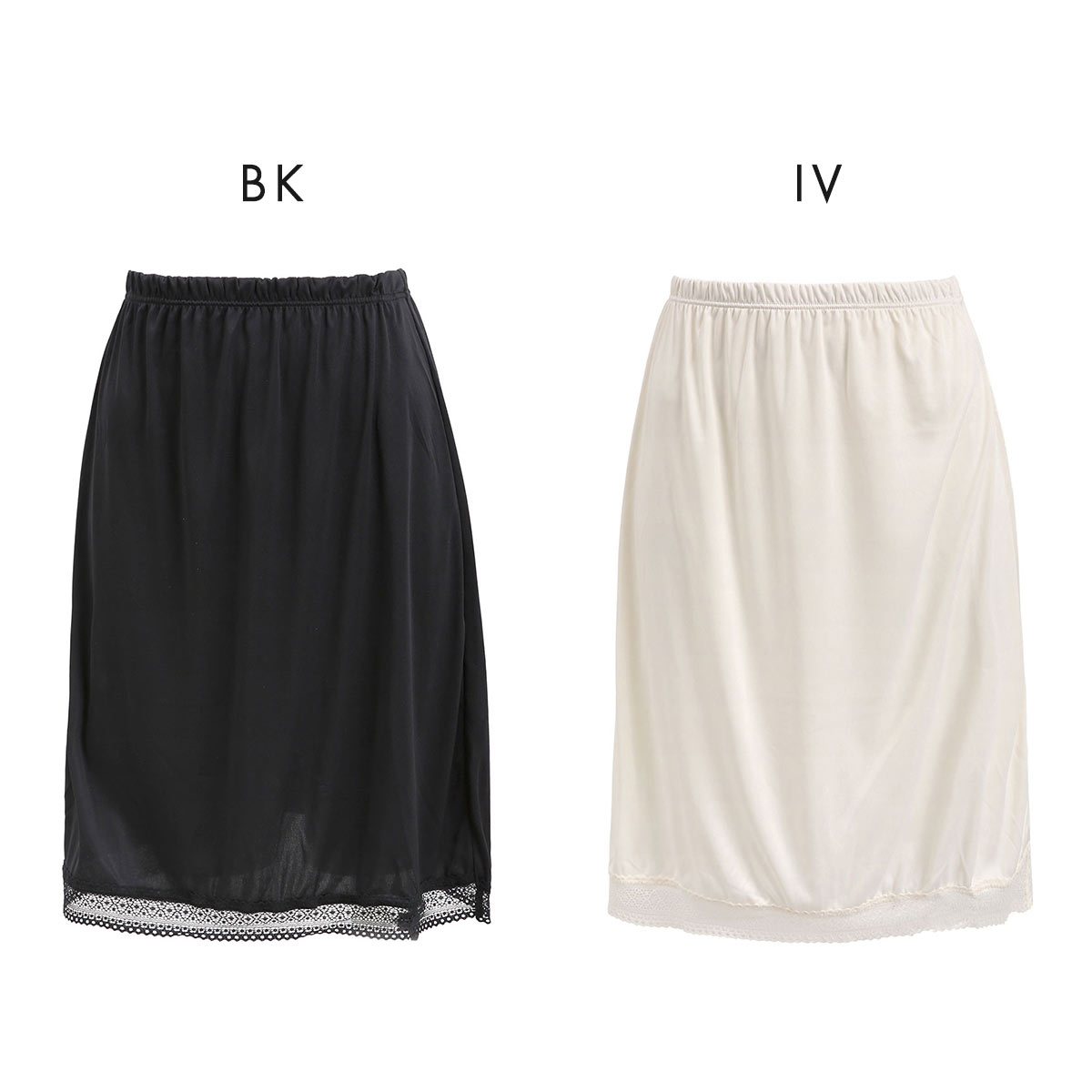 すっきりとアウターを着こなす ランジェリー レース付き ペチコート 55cm丈 レディース(IV-アイボリー-M-55)