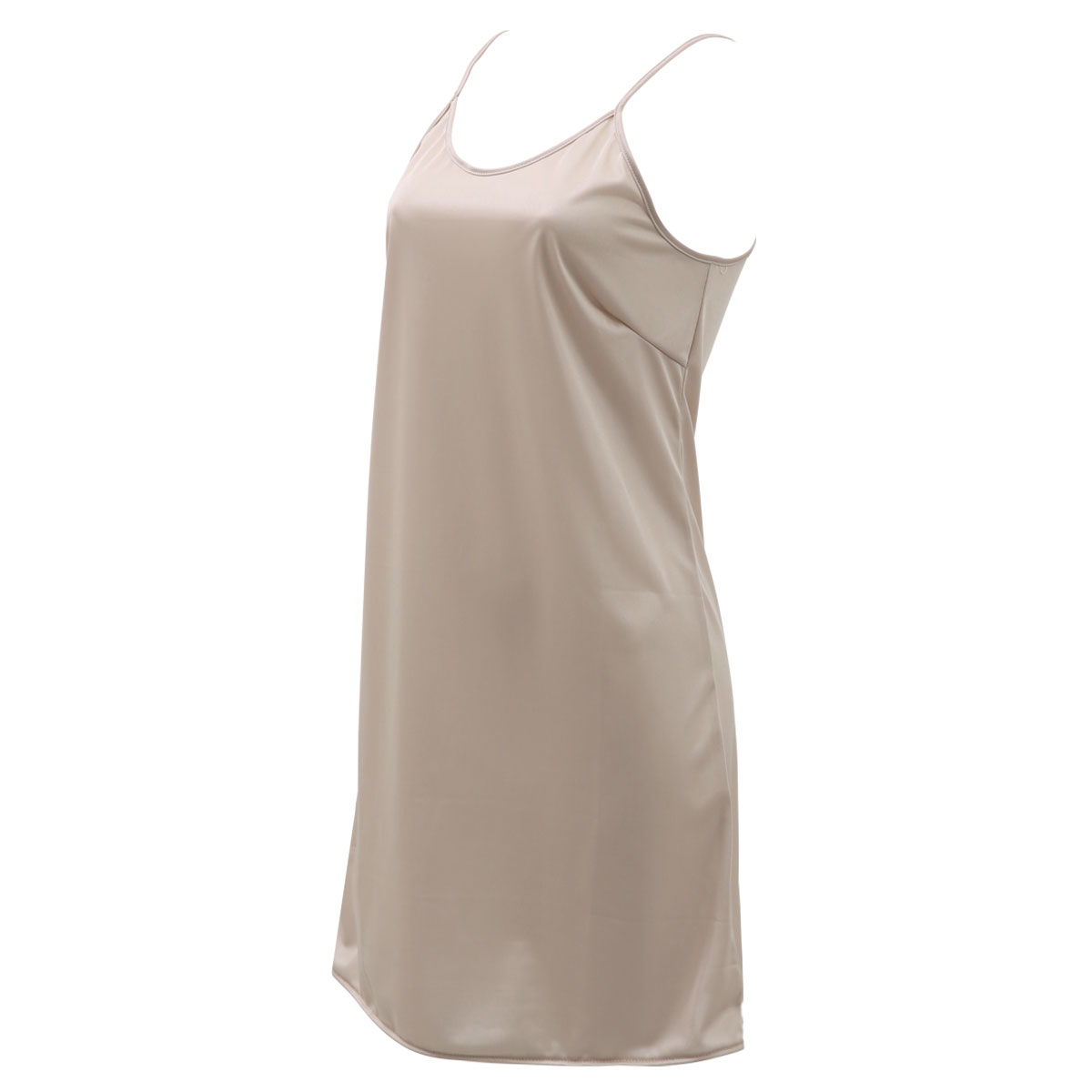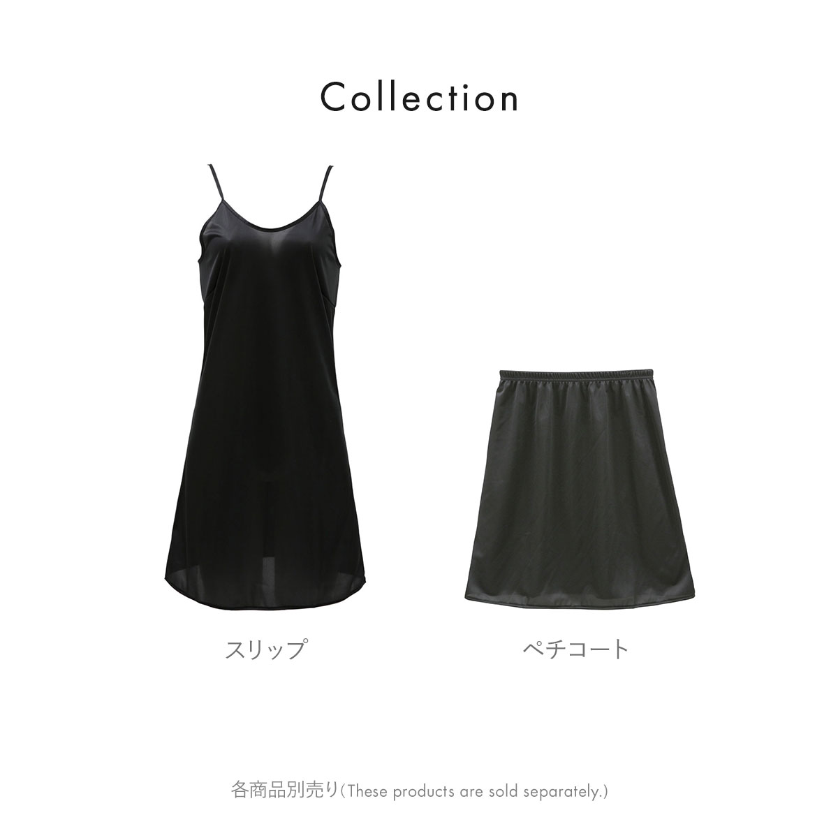 ワンピースやドレスなどのインナーに使える、85cm丈のランジェリー。1枚中に着るだけで、アウターのすべりがよく、なめらかで心地いい着用感です。