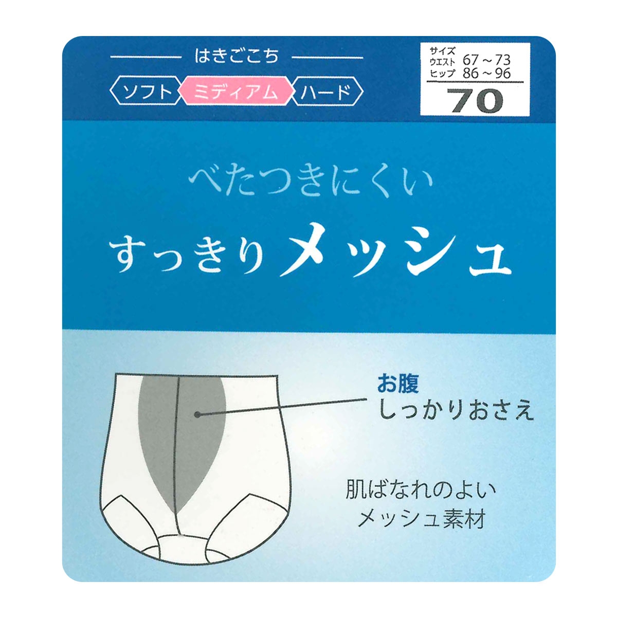 全体的に程よいサポート力があり、おなか部分の裏打ちパワーネットを使用する事により、ぽっこりおなかをしっかりおさえます。