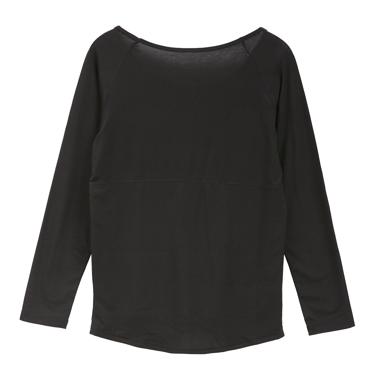 着るホカロン 防風機能付き ラグランスリーブ 9分袖Tシャツ 後丈長め レディース インナー 保温 蓄熱 裏微起毛 ストレッチ(BK-ブラック-M)