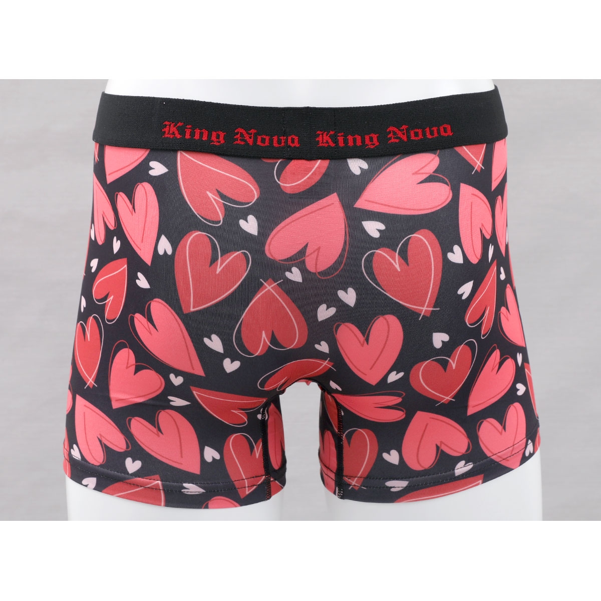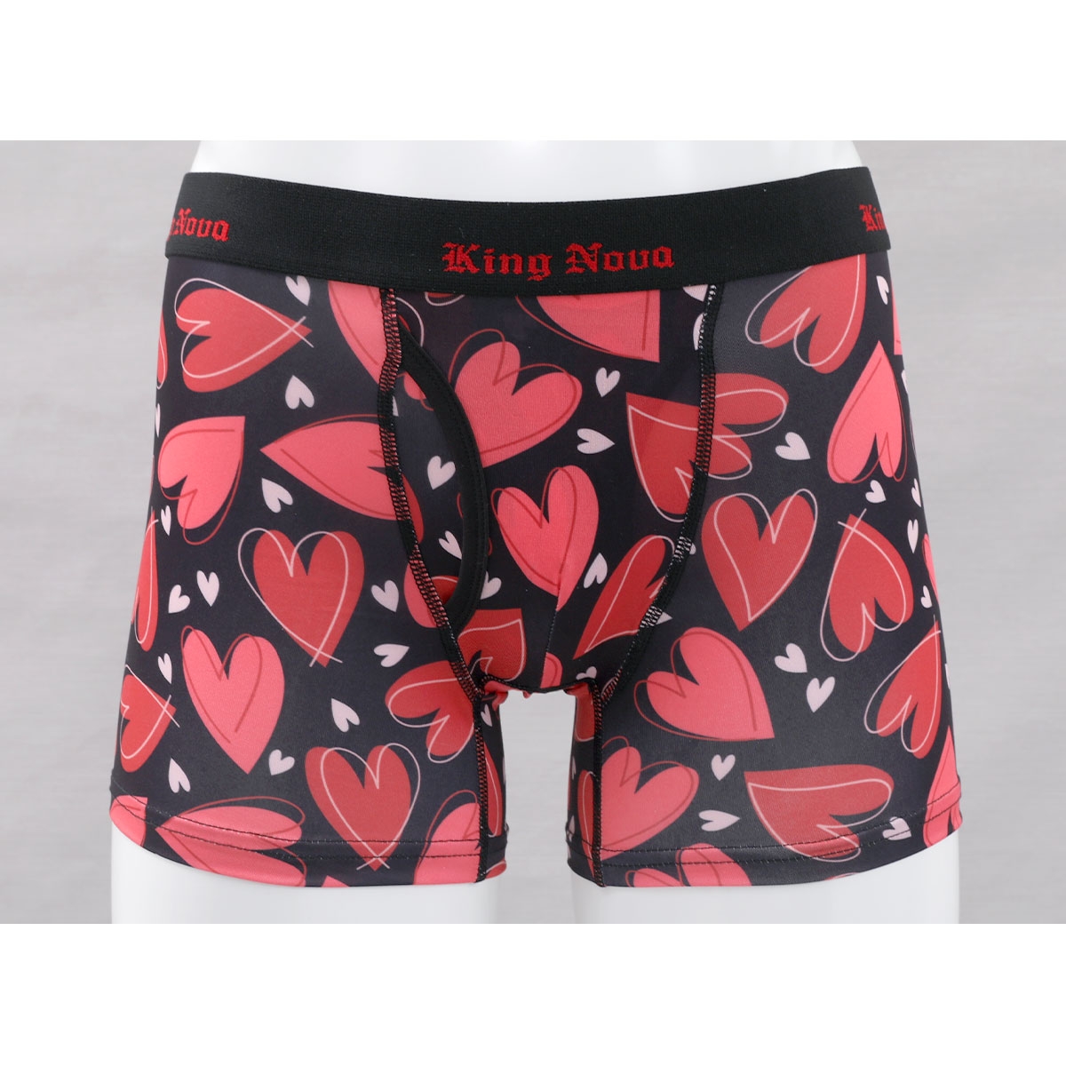 ラブリーなハートをいっぱい描いたボクサーパンツです。ウエストゴムにはロゴ入りのおしゃれな派手柄デザイン☆