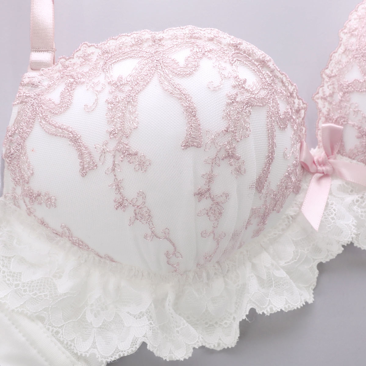 谷間 × ノンワイヤー シンプルレース ブラジャー ショーツ セット ワイヤレスブラ バックレース