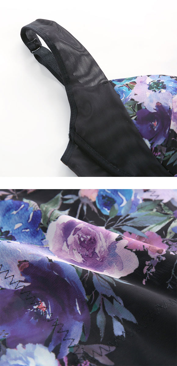 ワイヤー入り カップ付き シェイパー ボディシェイパー 補正下着 花柄(PU-パープル-M)