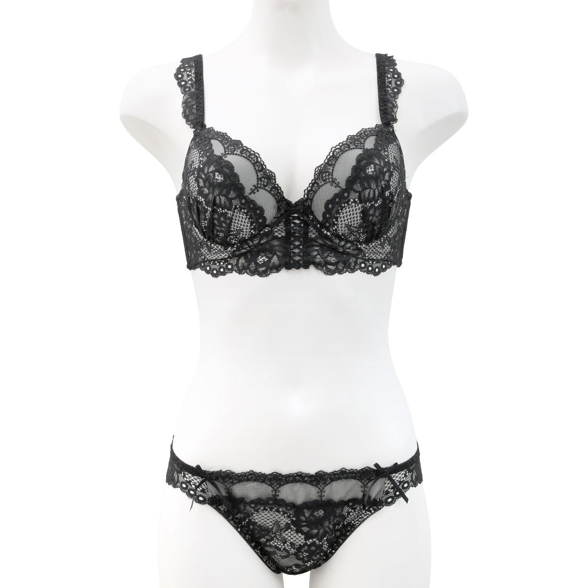 スパイシー 脇高 編み上げレースアップ ビスチェ風 ブラセット BCD65-85 大きいサイズ 谷間 ブラジャー ショーツ セット SPICY