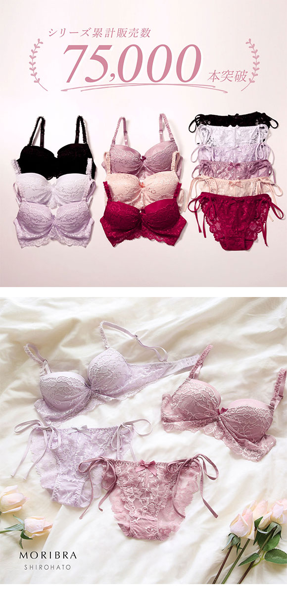 セットショーツのデザインが、サイドでリボンを結ぶリボンショーツなのが白鳩限定ポイントです♪やわらかいストレッチレースを使用し、花柄が上品な印象です♪