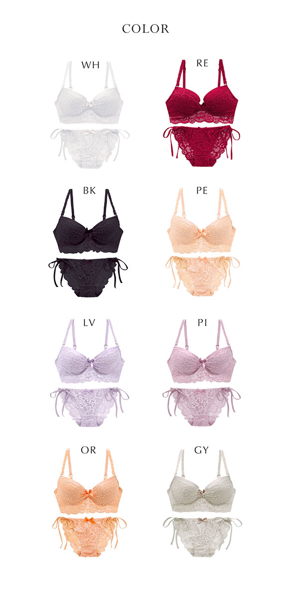 別注 ストレッチレース ブラジャー ショーツ セット 盛りブラ 谷間ブラ 総レース 紐パンツ