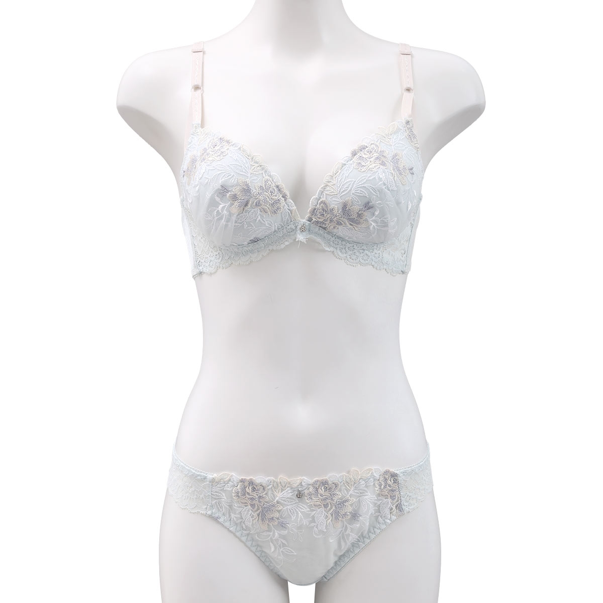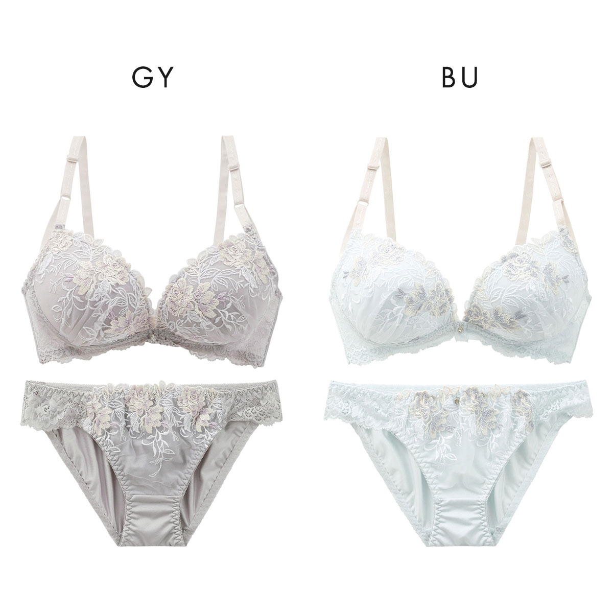 ピュアシェリ 3色小花チュールレース ノンワイヤー ブラセット M L LL ブラジャー ショーツ セット ワイヤレス PURECHERIE