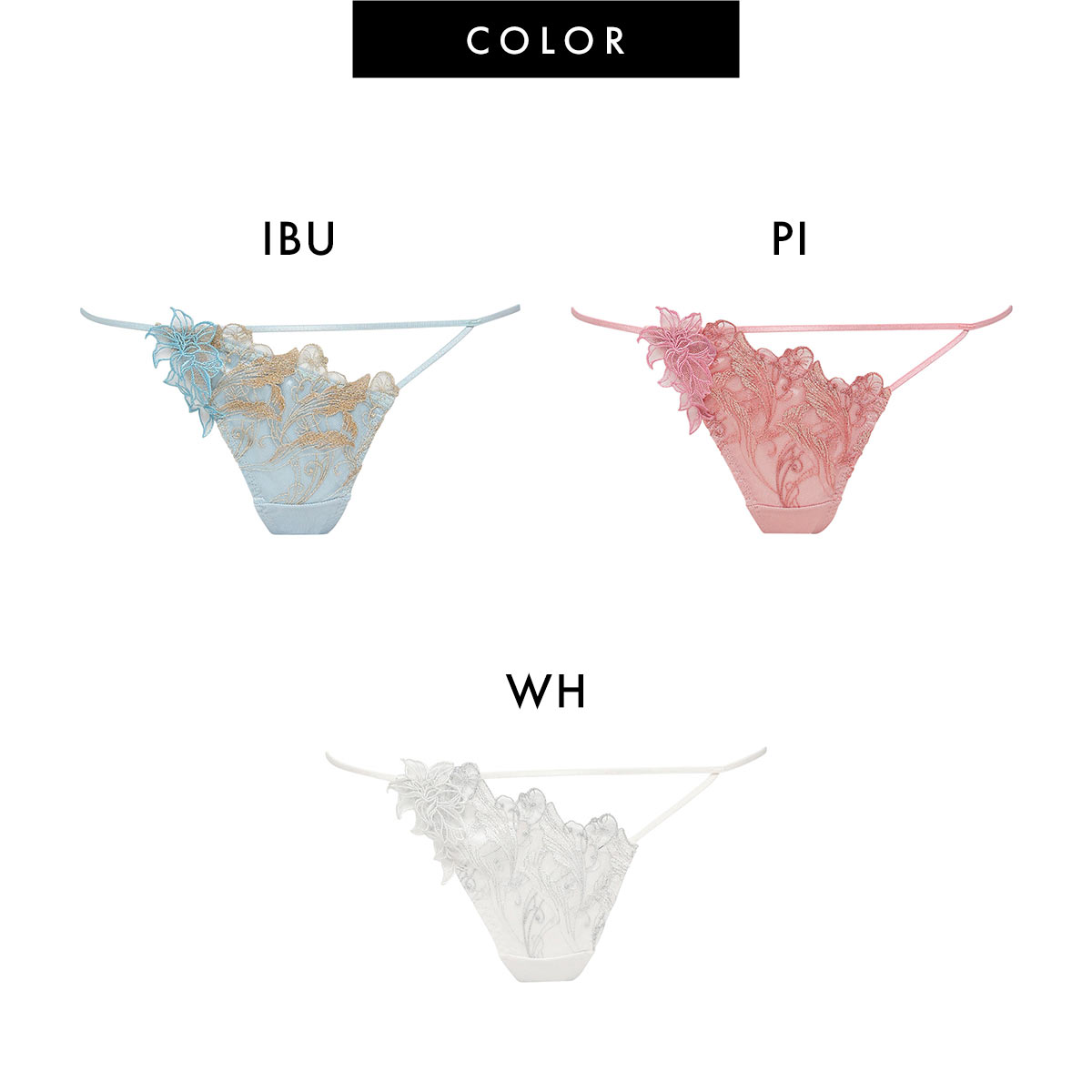 カラーIBU-アイスブルー、PI-ピンク、WH-ホワイト、NV-ネイビー、BP-ベビーピンク
