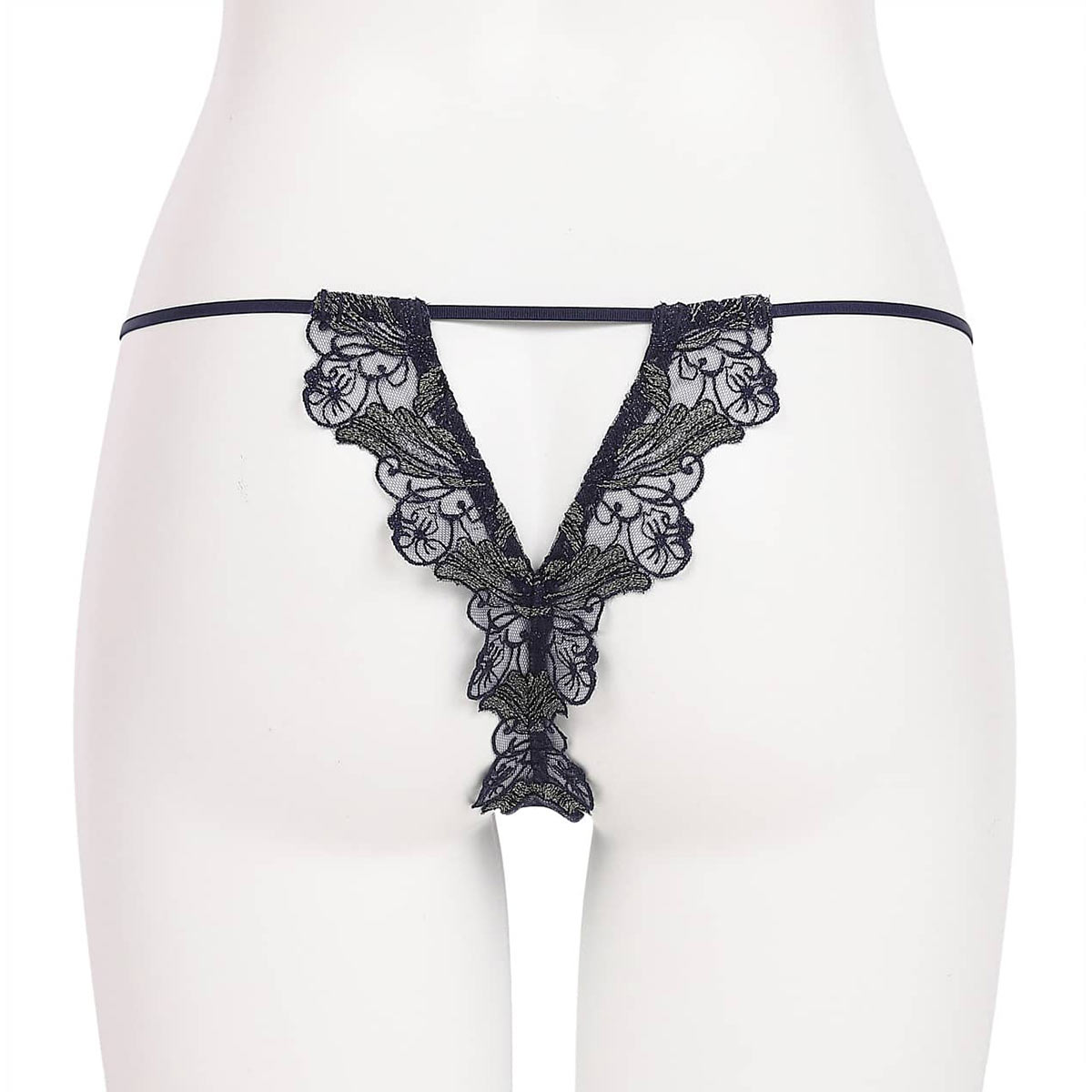 ラヴィジュール RAVIJOUR フローティングマーメイド エンブレース Tバック ショーツ SM バックレース 総レース 透け バックオープン(NV-ネイビー-S)