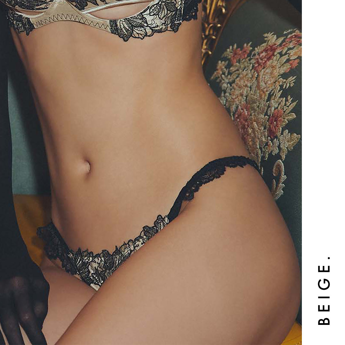 肌の上で贅沢に咲き誇るブラックのエンブロイダリーレースが、端正さと神秘性を同居させるコレクション【フィオナ】。しっとりと輝くサテン生地が、計算された大胆さと色香を放ちます。 無垢な清らかさと、抗えない艶っぽさが溶け合う、至高のコレクションです