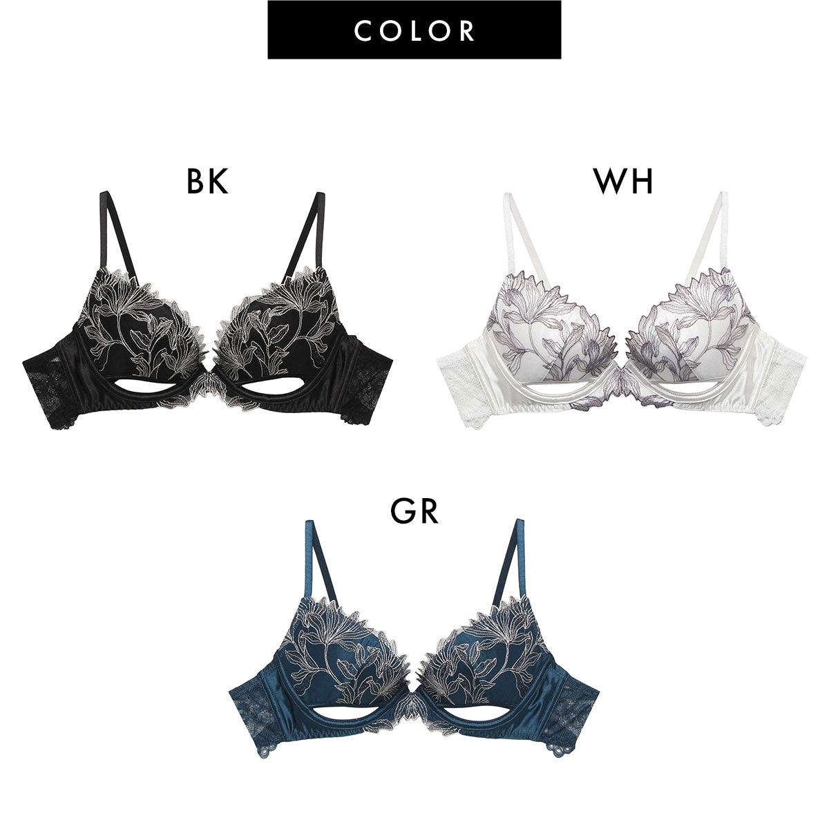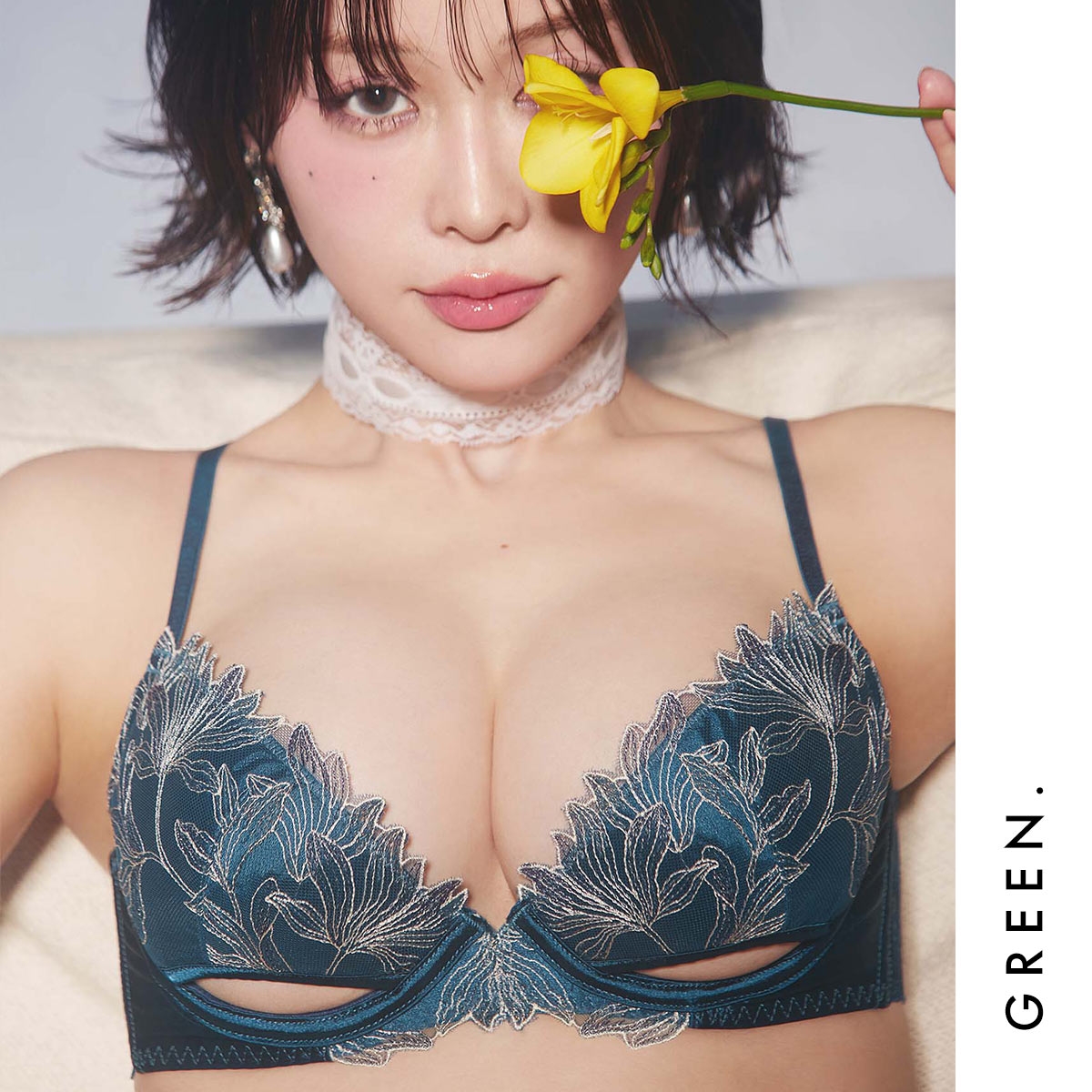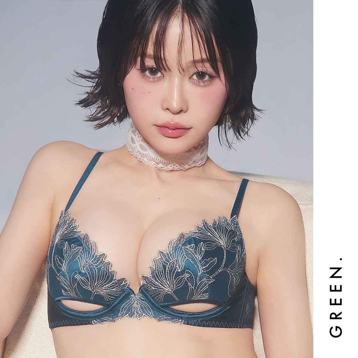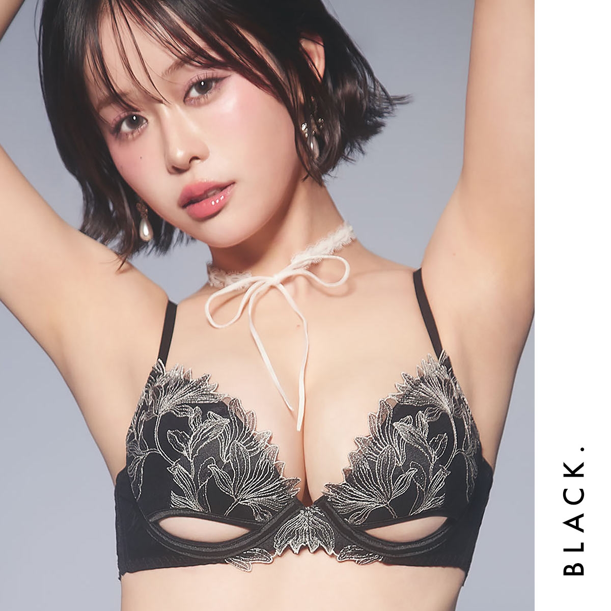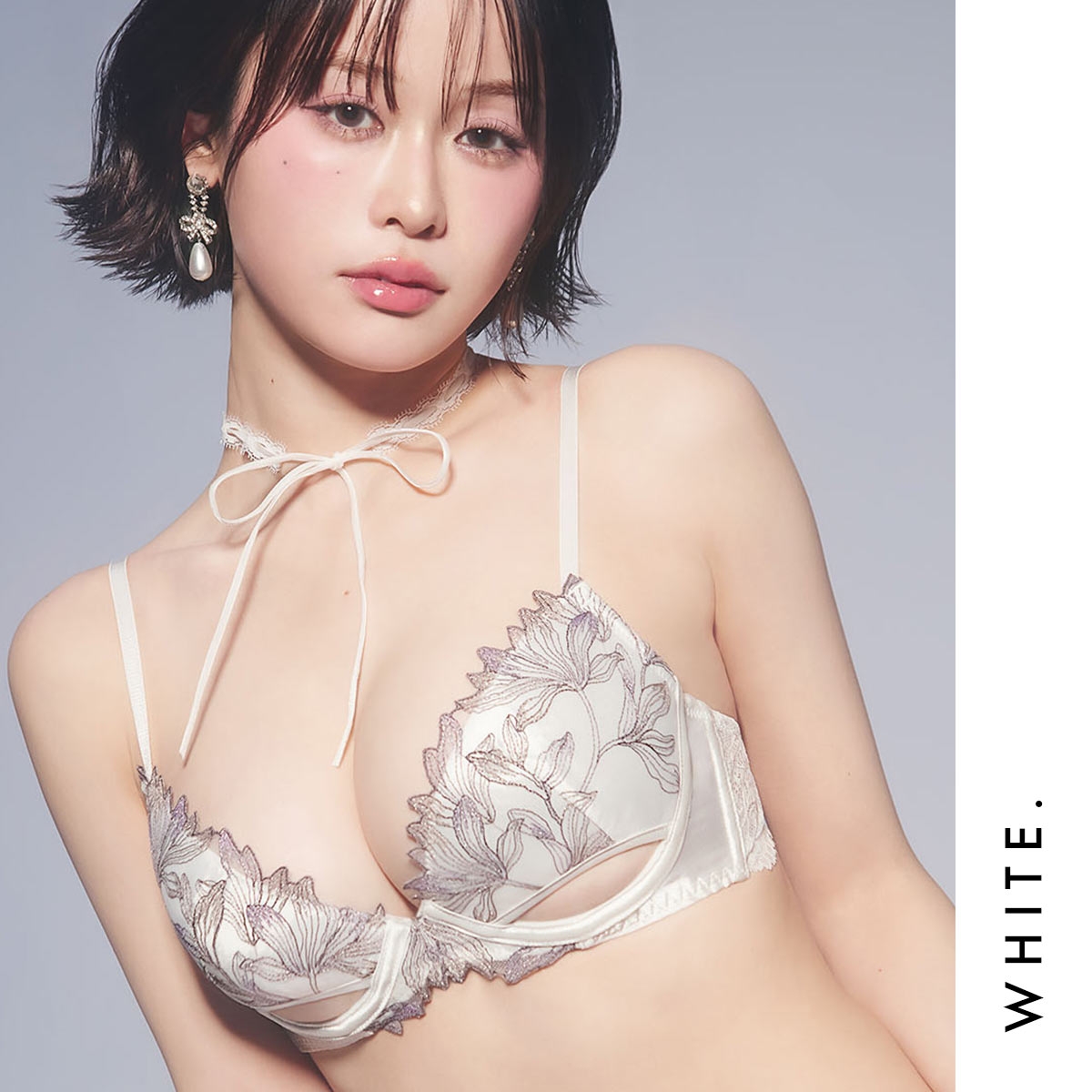 霧に包まれた花々を描いた繊細な刺繍が、柔らかな陰影を描く【ミストフローラ】。透けるチュールとさりげないラインが印象的な美しさを宿します。カップ下のホールから覗く素肌が、計算された大胆さと色香を放ち、甘さの奥に凛とした余韻を感じさせる、大人のためのコレクションです。