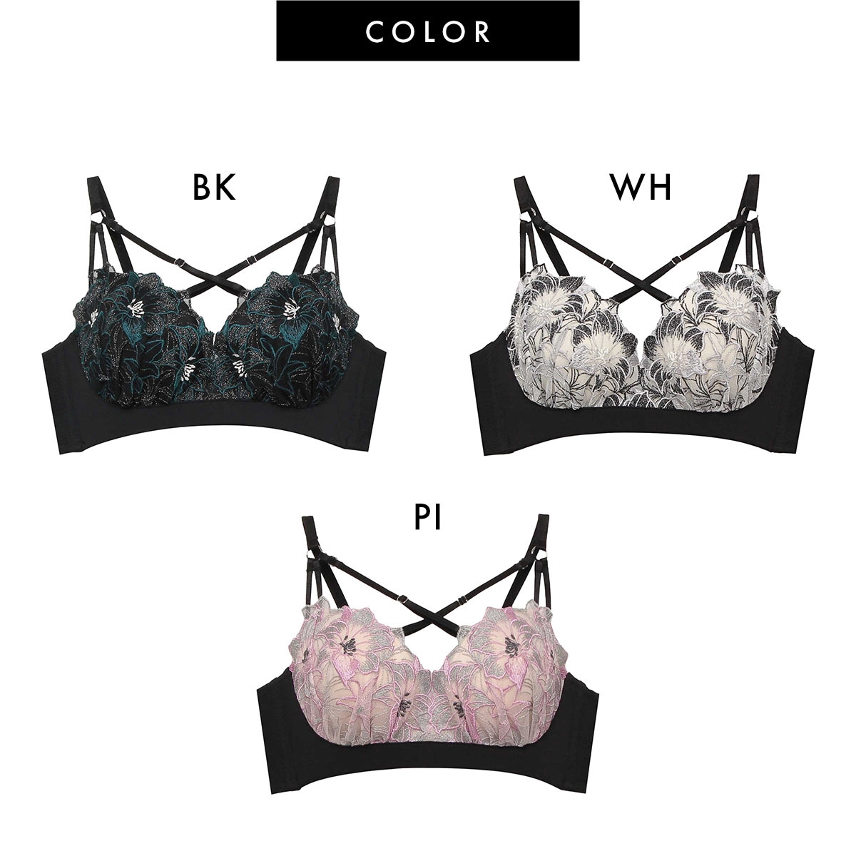 カラーBK-ブラック、WH-ホワイト、PI-ピンク
