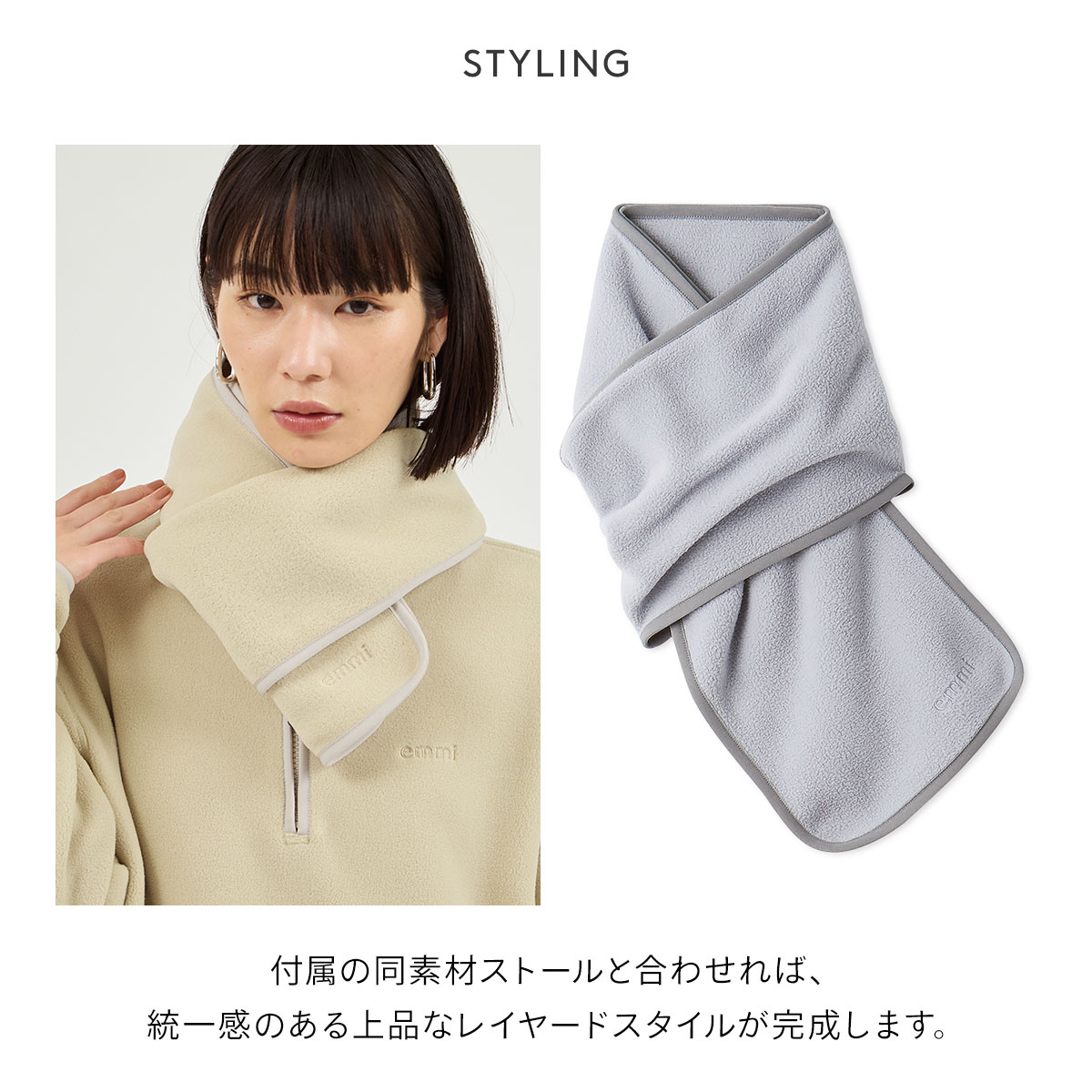 付属の同素材ストールと合わせれば、統一感のある上品なレイヤードスタイルが完成します。