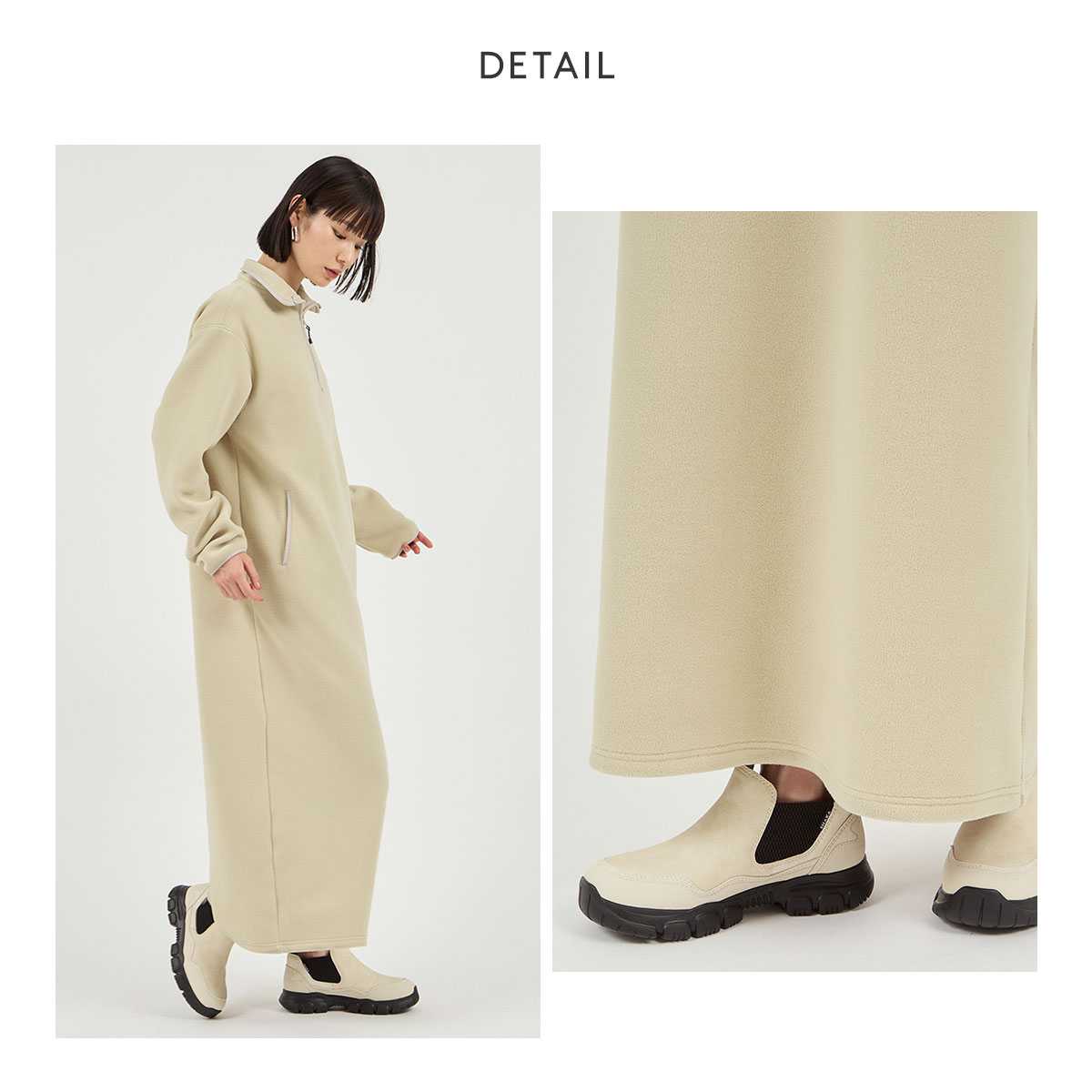 軽やかで柔らかなフリース素材のハーフジップワンピース。