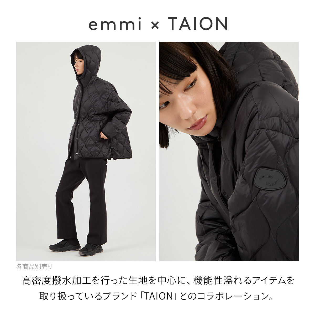 価値のある価格の追求にフォーカスを当て、高機能・保温性・着心地に拘ったダウンウェアーを展開し、高密度撥水加工を行った生地を中心に、機能性溢れるアイテムを取り扱っているブランド「TAION」とのコラボレーション第2弾。