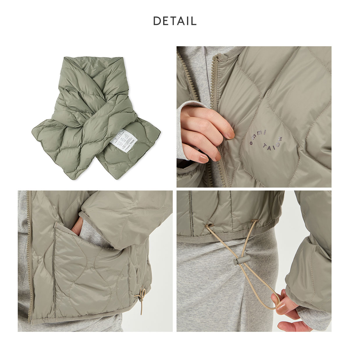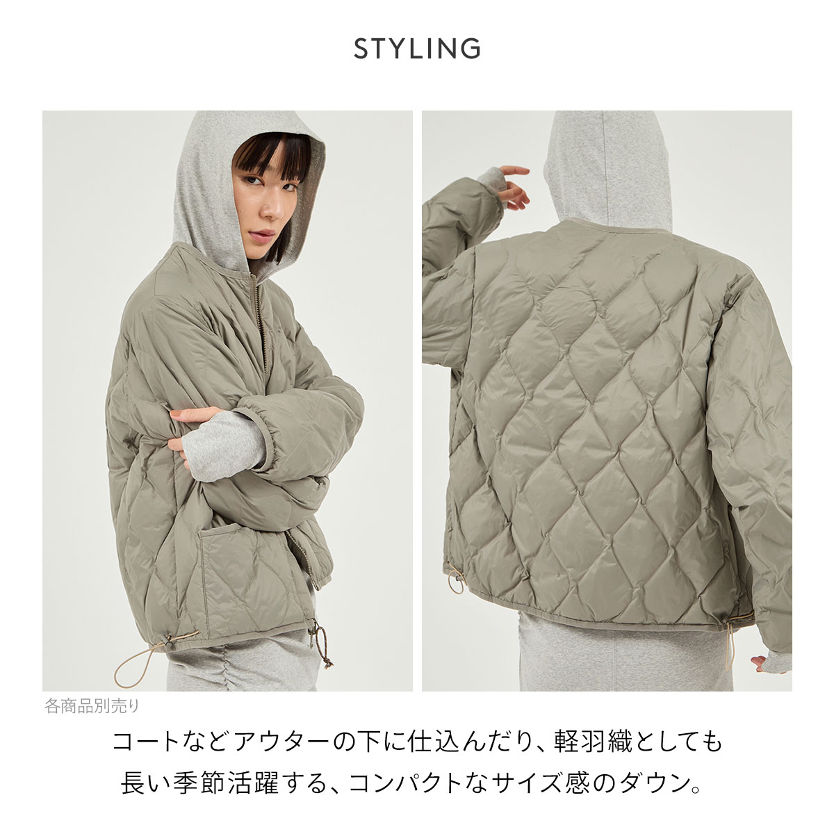 こちらは、コートなどアウターの下に仕込んだり、軽羽織としても長い季節活躍する、コンパクトなサイズ感のダウンです。