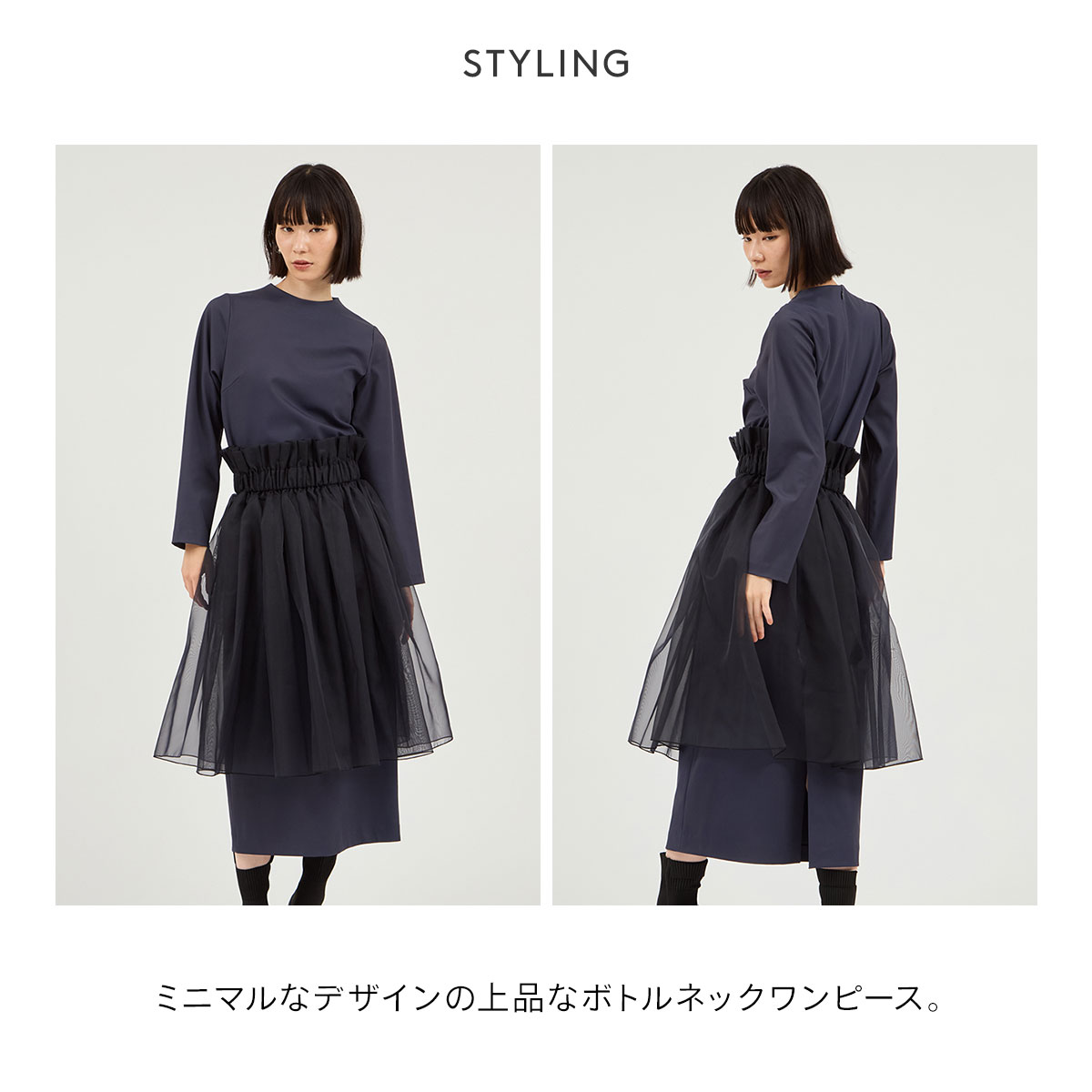 ミニマルなデザインの上品なボトルネックワンピース。