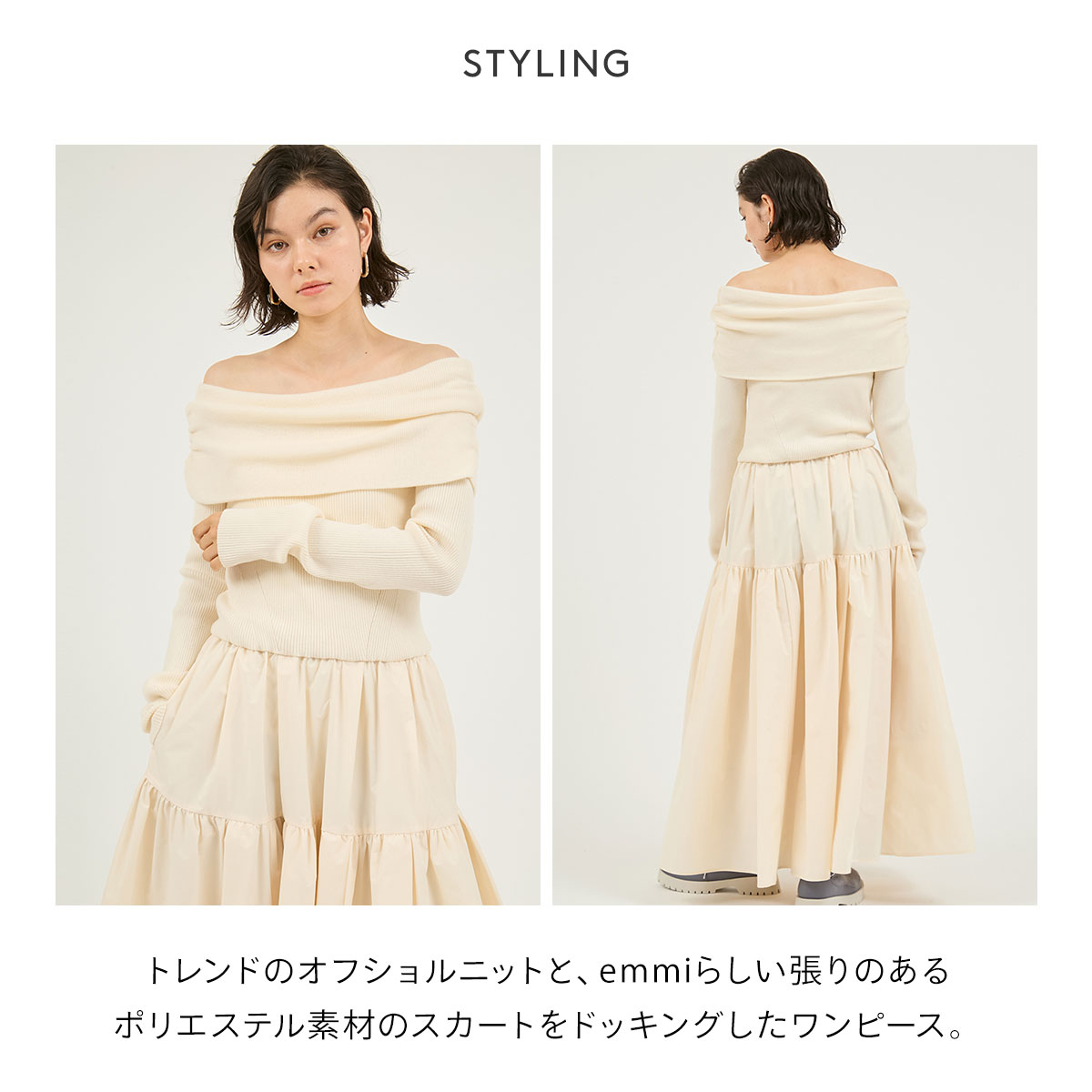 emmi★オフショルニットが旬な雰囲気のドッキングワンピ