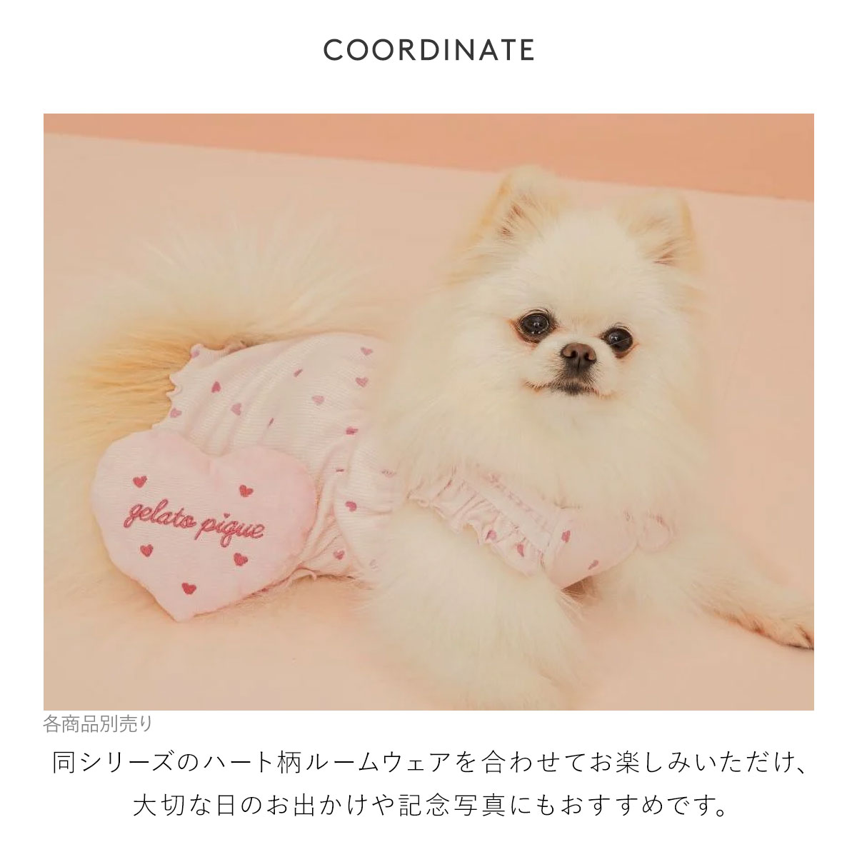 同シリーズのハート柄ルームウェアを合わせてお楽しみいただけ、大切な日のお出かけや記念写真にもおすすめです。