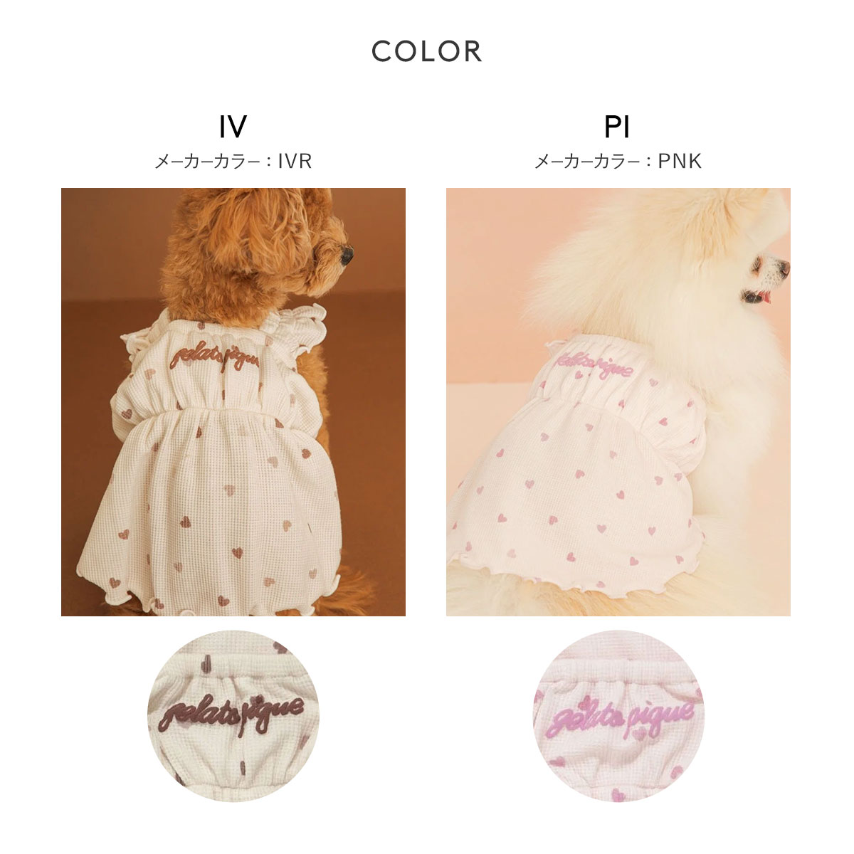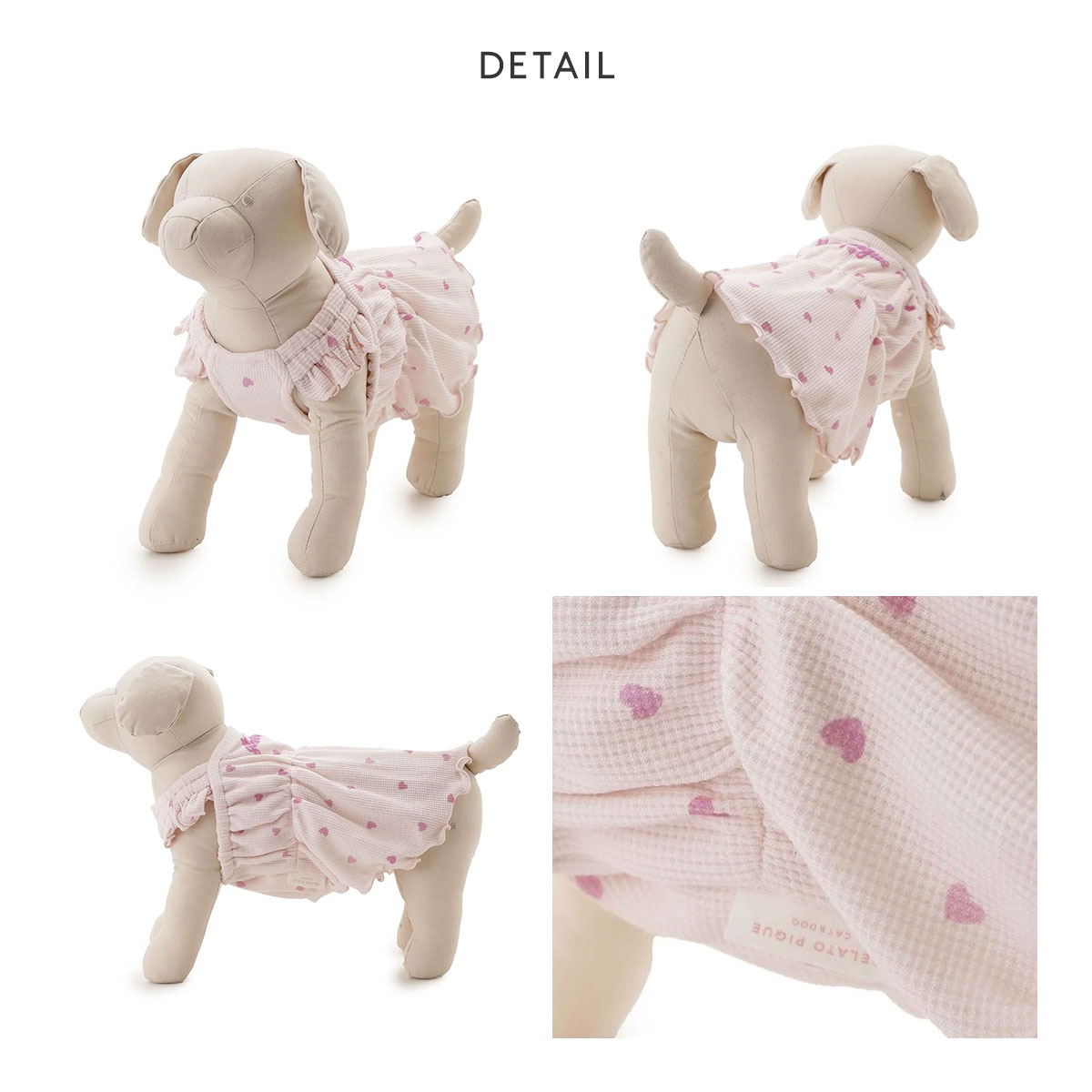 ジェラートピケ★フリルがキュートなハート柄ペット用ワンピース